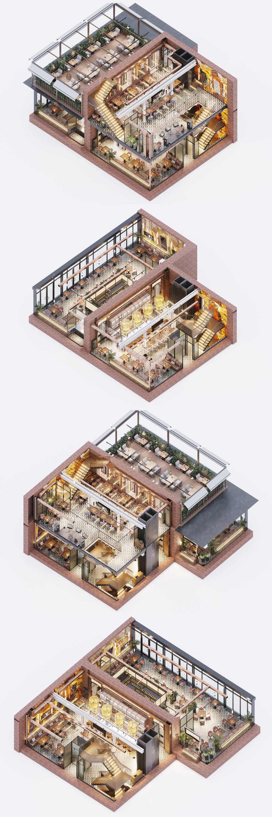 Классная виза, дизайн, но ресторан получился интереснее, приглушённый в пестроте, особенно сравнил картинку номер 13 по гуглу. Это не критика по работе. Финал не всегда схож с оригиналом. По причине того, что 70 процентов материала не найти при реализации и выкручиваешься с тем, что есть. А работа класс как и прочие работы.