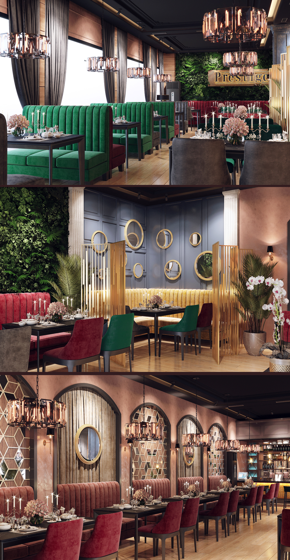 Отличительной особенностью дизайна ресторана является сочетание не сочетаемых на первый взгляд предметов. В итоге мы получили — стильный, просторный, броский и запоминающийся интерьер. Уютная атмосфера такого ресторана обеспечит ему популярность среди молодежи, богемы, людей творчества и просто ценителей неординарных дизайнерских решений