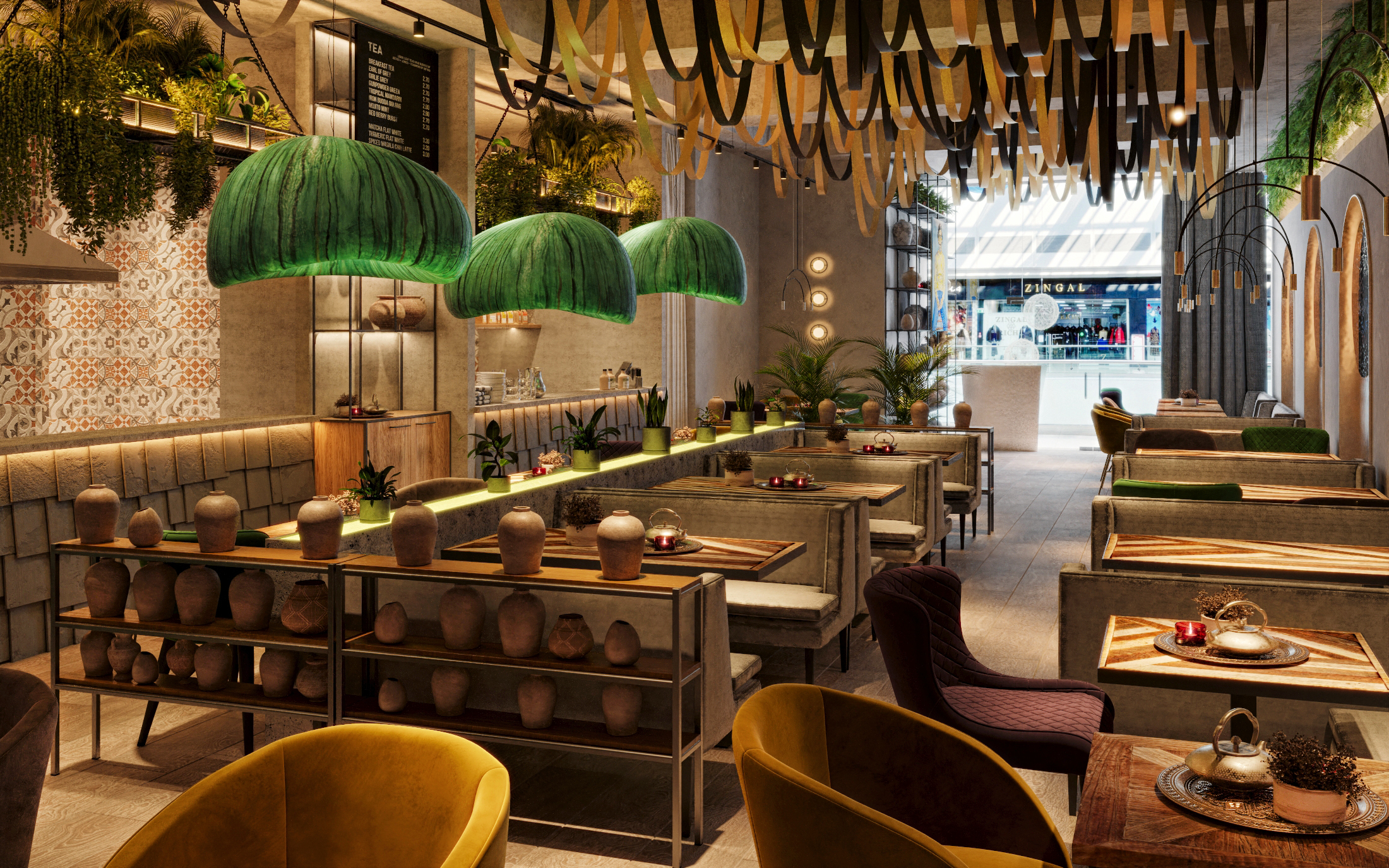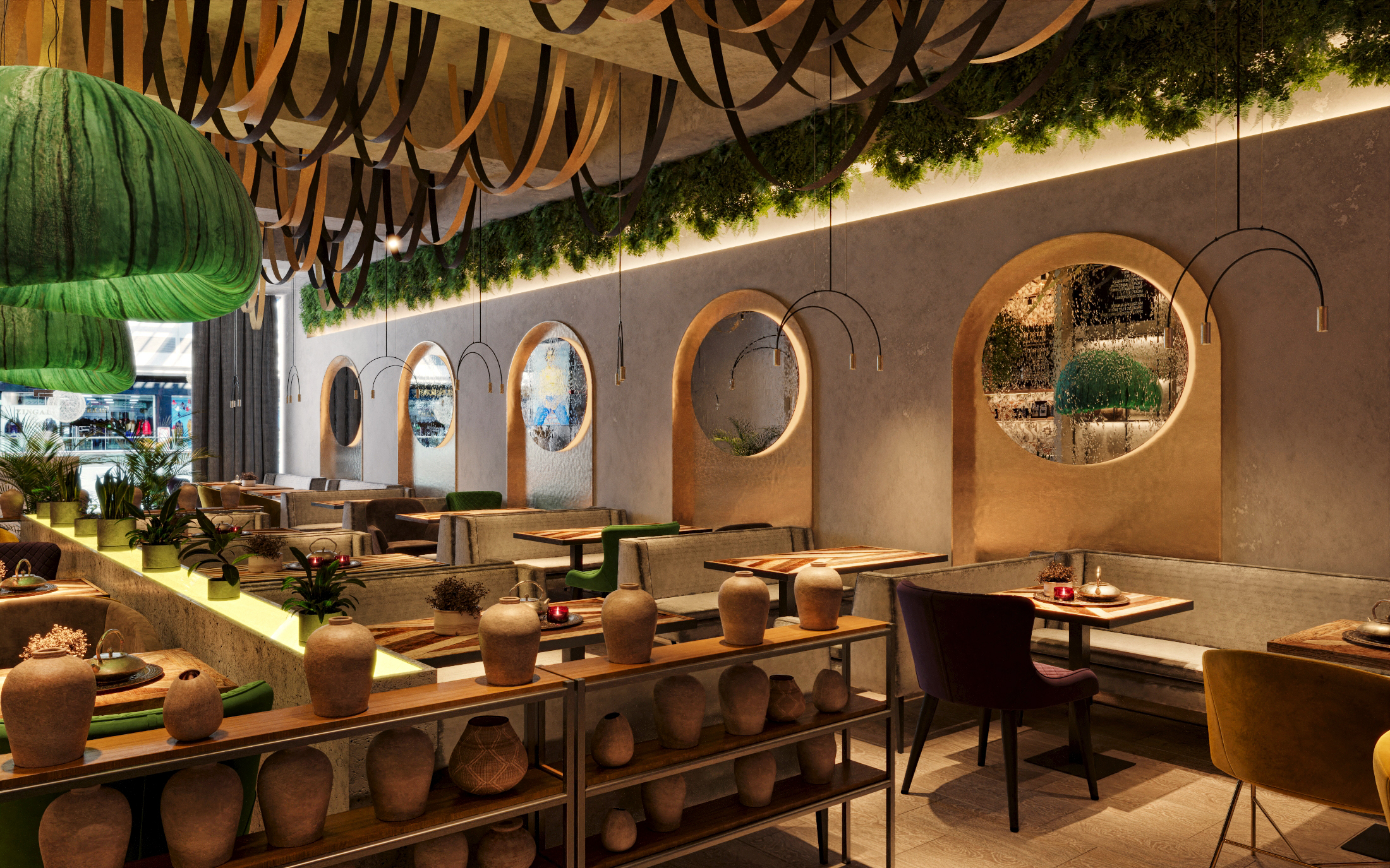 Визуализация ресторана для питерской студии дизайна интерьера в Тюменском тц. Проект 2021-2022 года. В принципе достойный быть в галерее, но очень старый и не в наилучшем качестве, тем не менее.