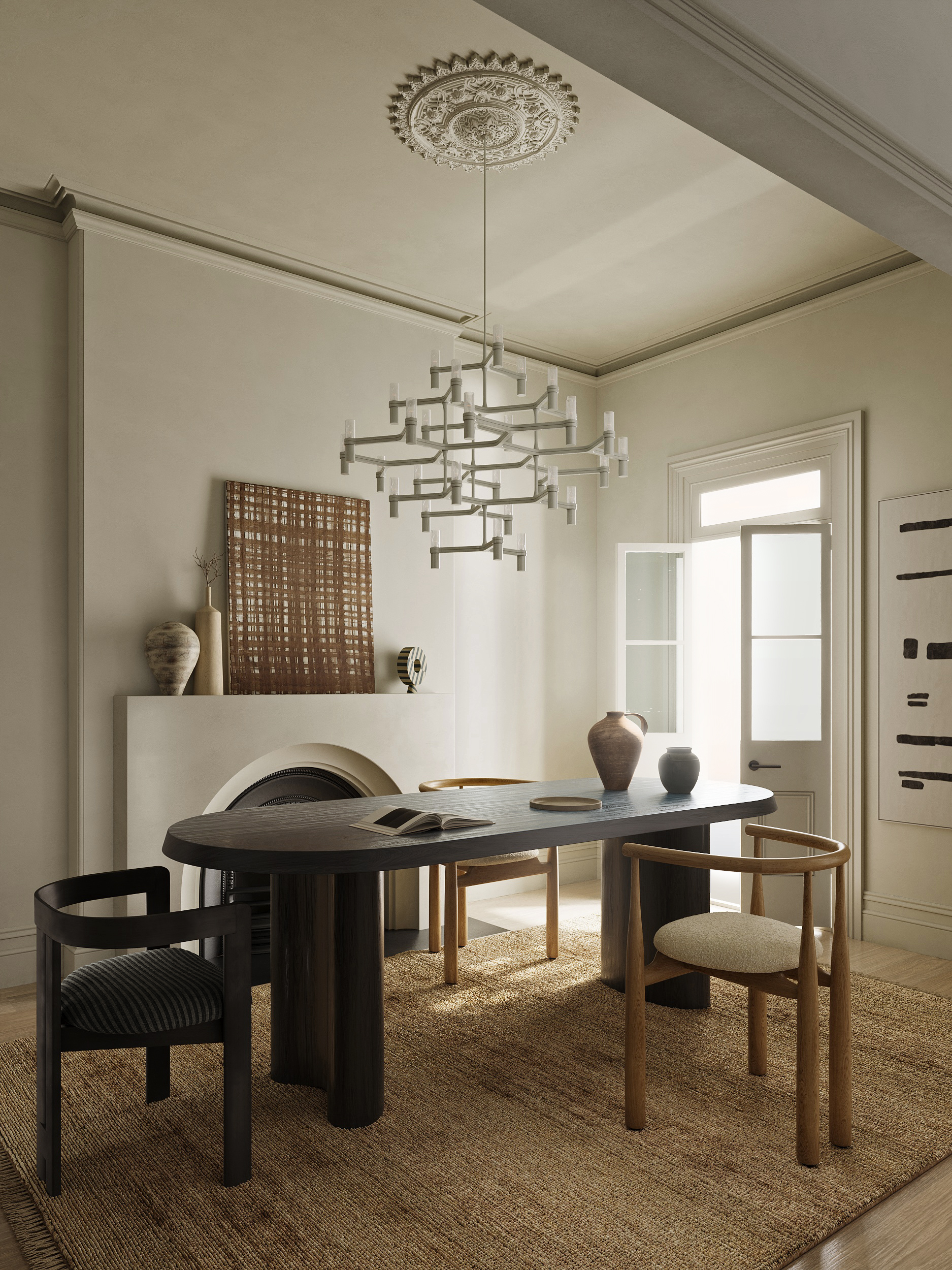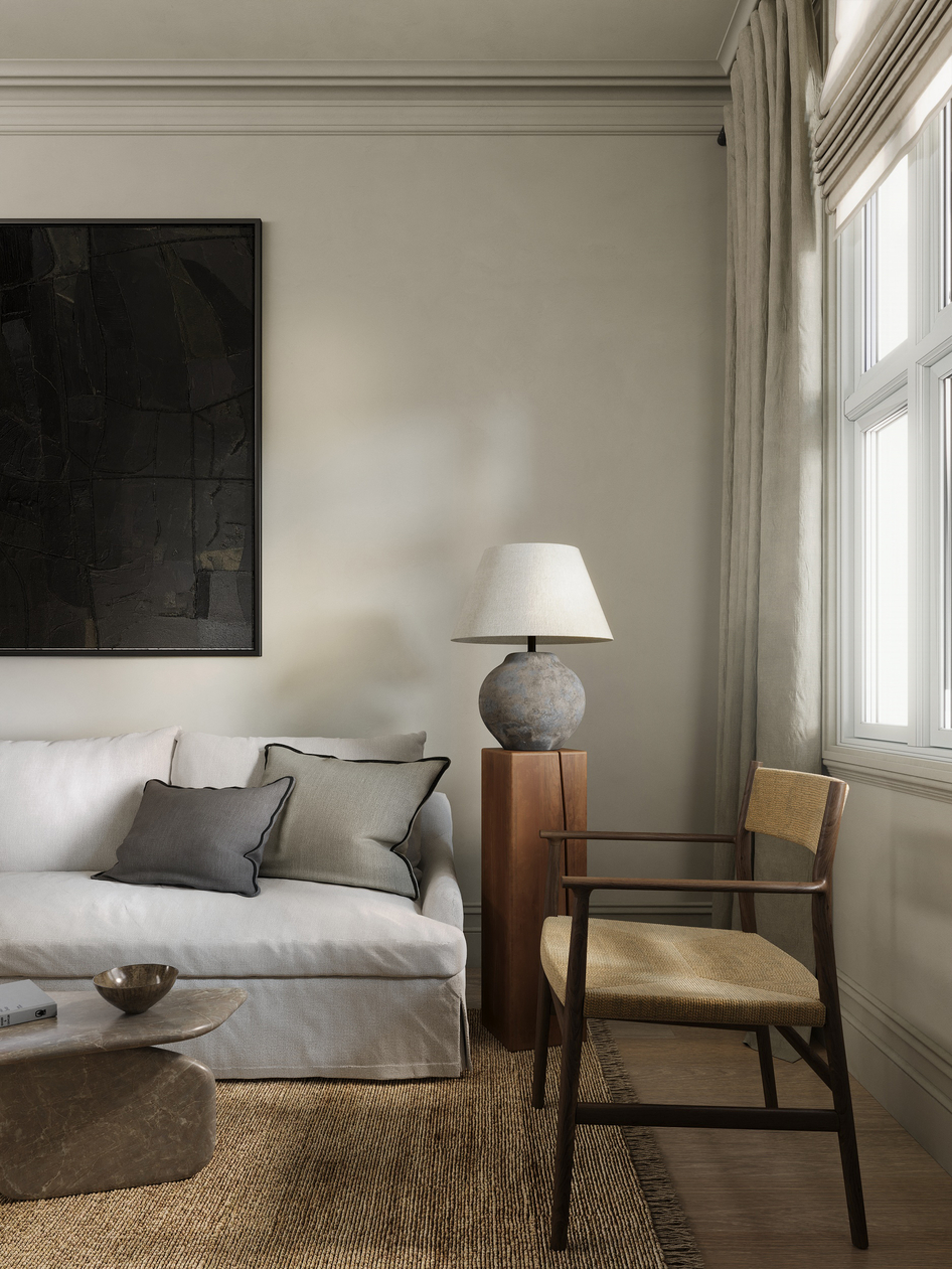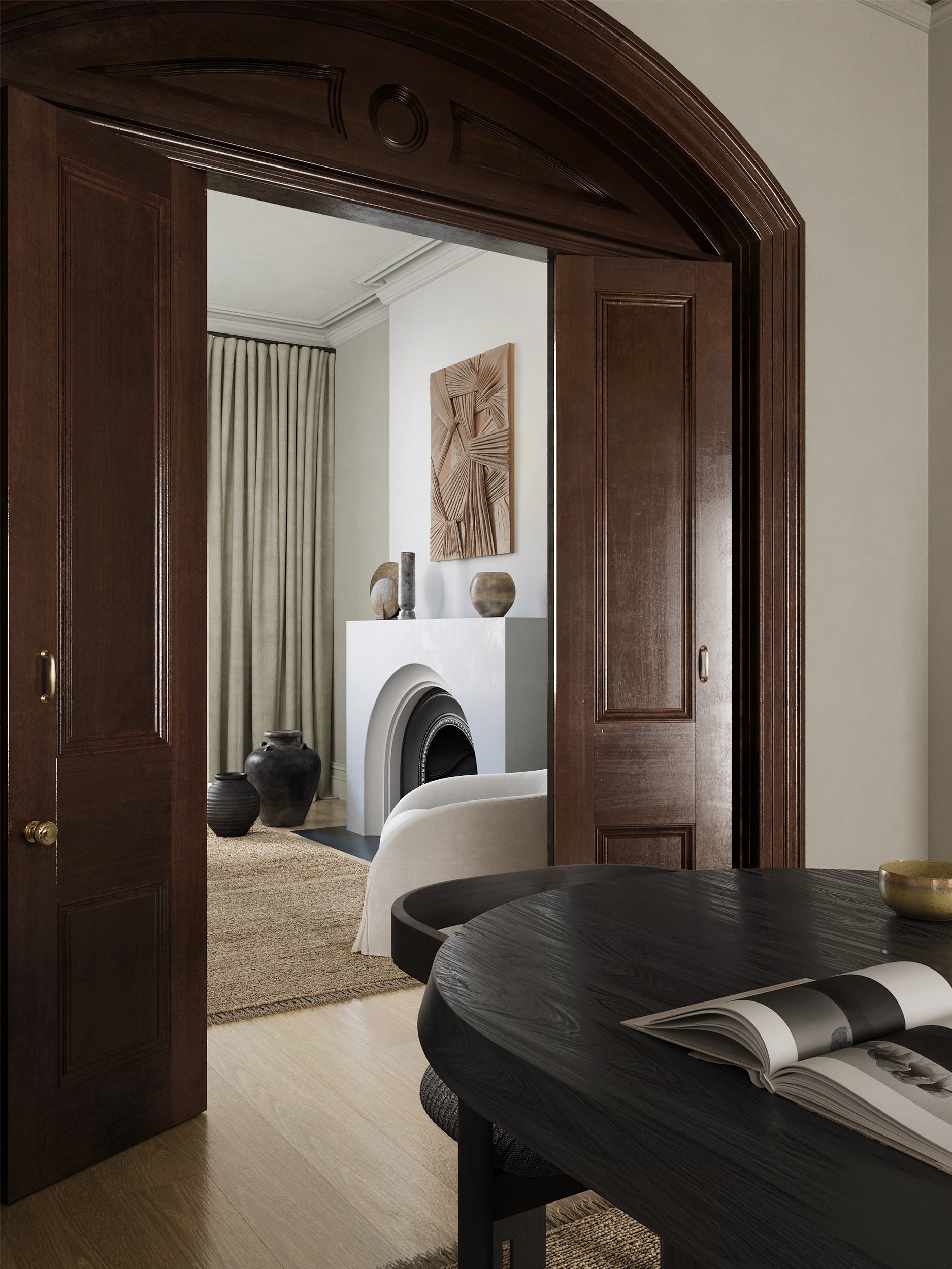 Вдохновилась интерьером дизайнера ALENA SMITH и собрала в 3д два смежных помещения, ссылка на фото проекта (референс)