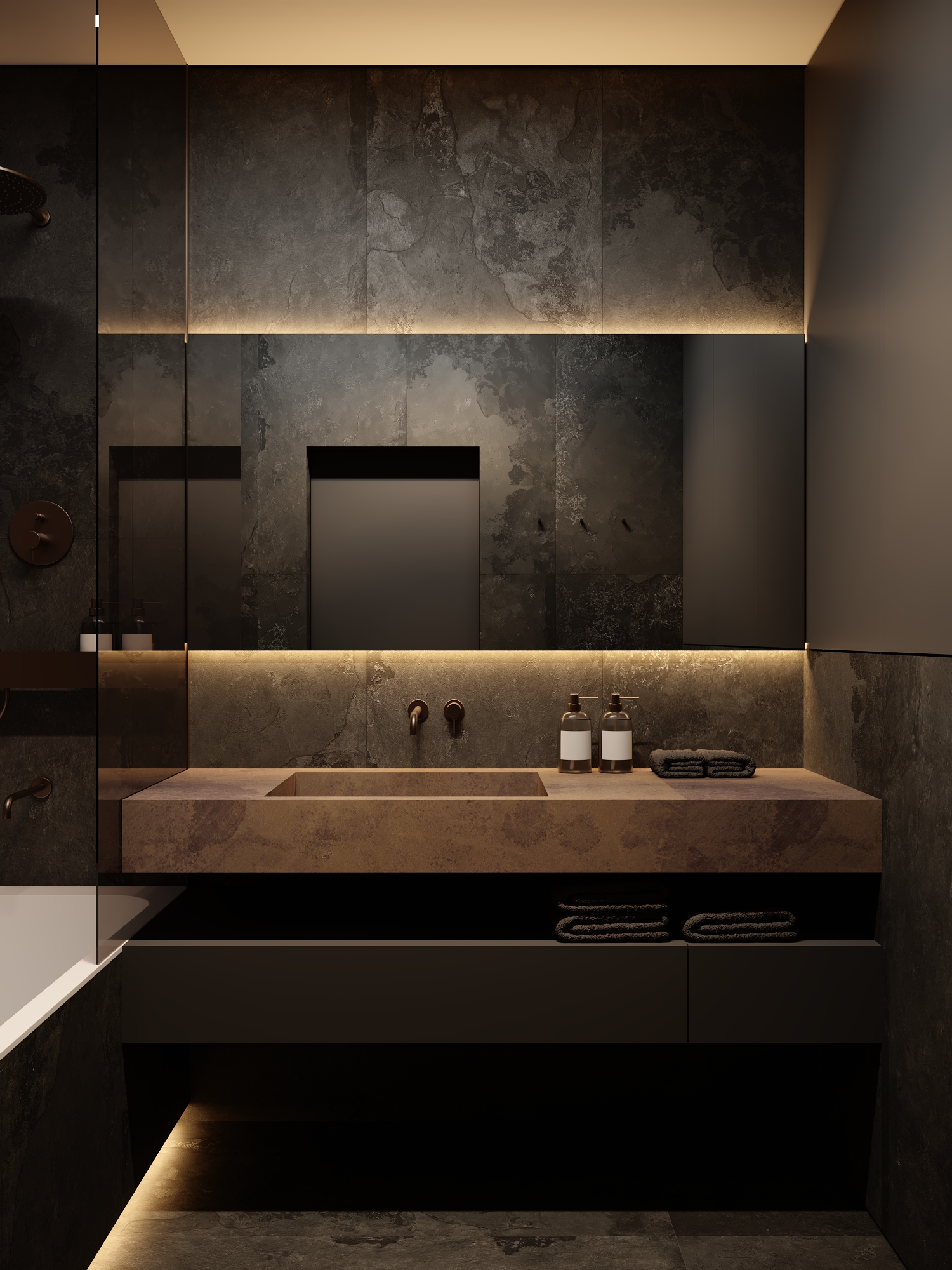 Dark rock texture bathroom.