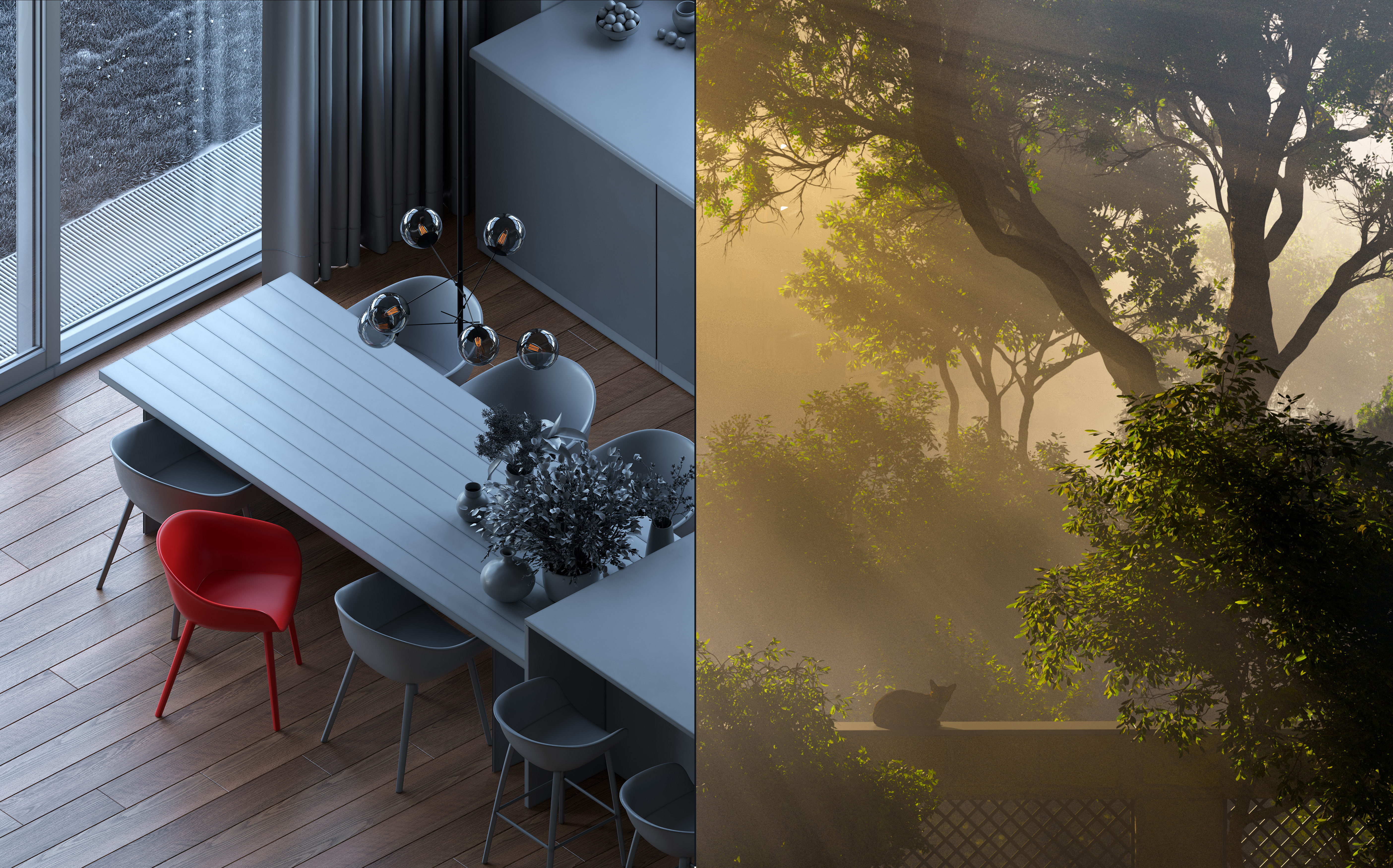 Очень понравилось работать с озеленением, оно полностью сделано в 3д в ручную. Так же было интересно работать с деталями, мое любимое это торчащие завитухи на кресле.