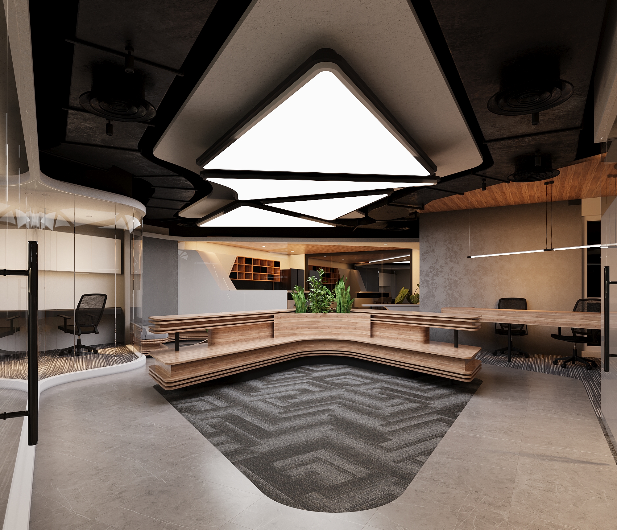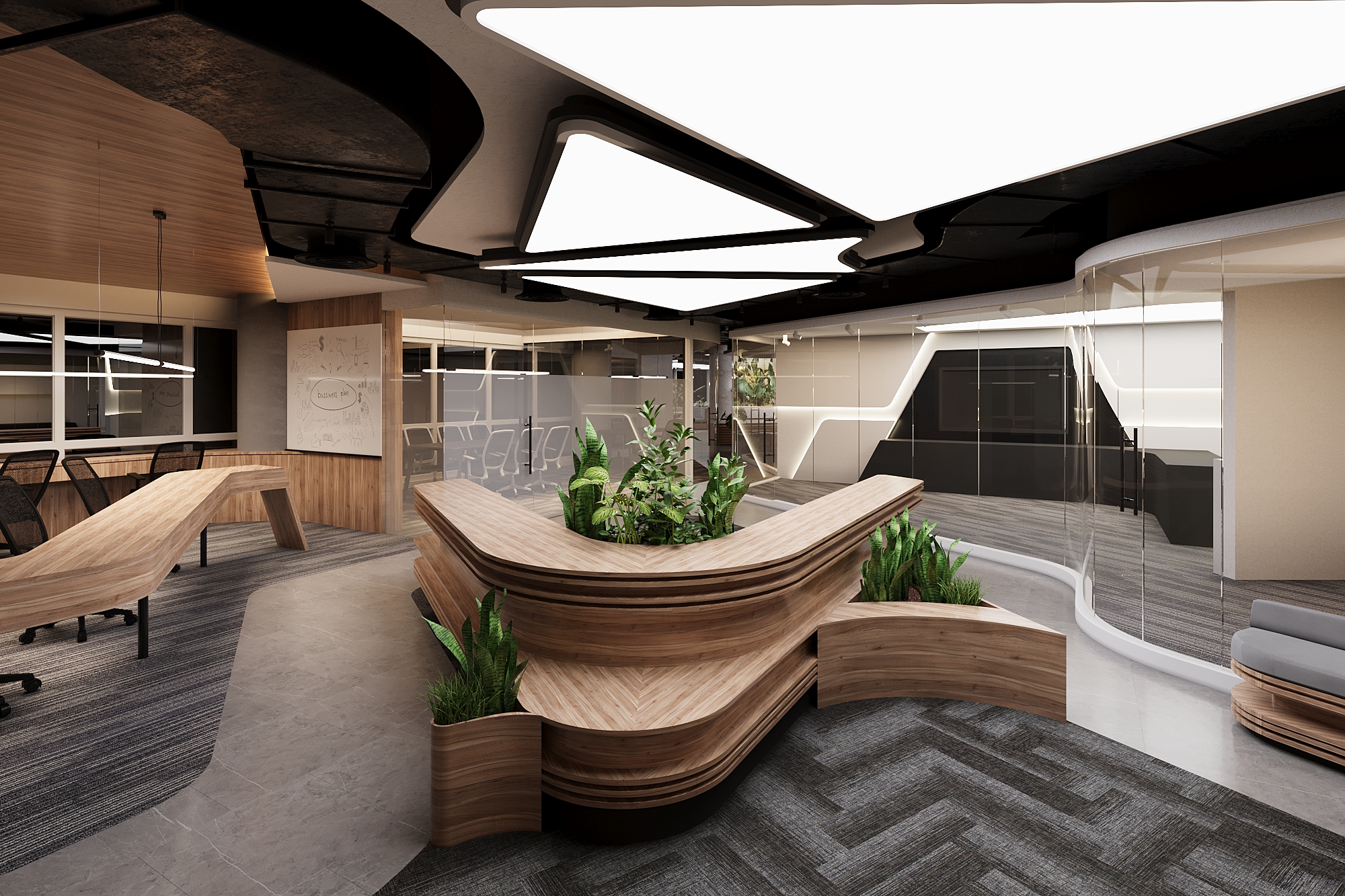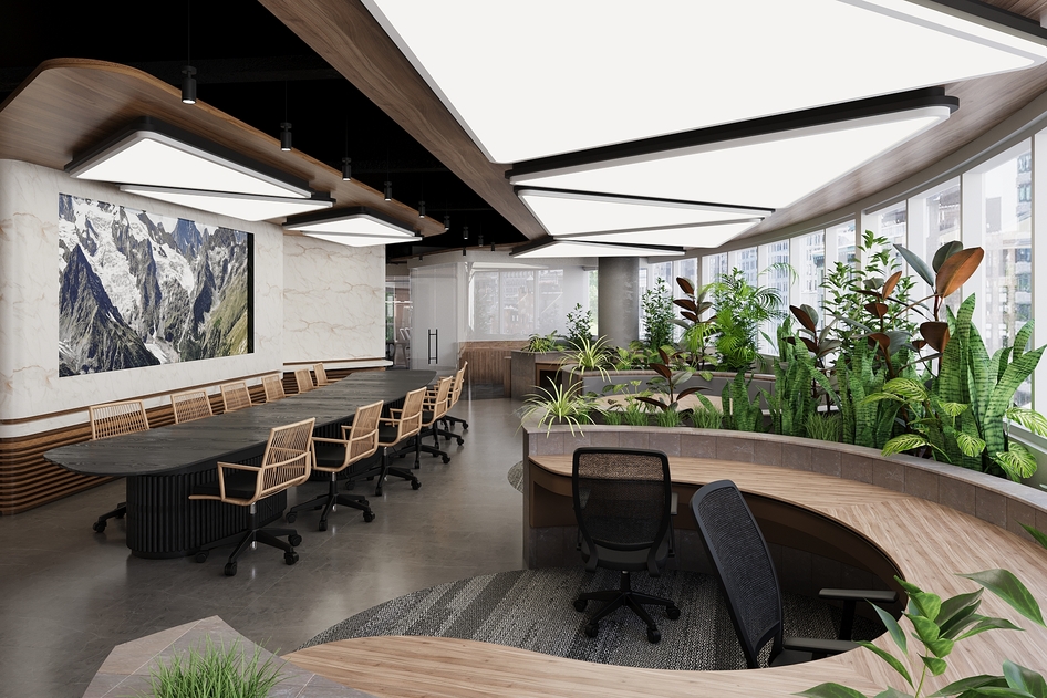 Первым шагом при проектировании коворкинга является его разделение на небольшие секции и распределение функциональных потребностей по каждой из них. Каждая функция имеет свои уникальные особенности, и каждая функция выполняется разными подразделениями, поэтому ожидается, что дизайн интерьера будет включать в себя различные формы и узоры. Несмотря на различия, необходимо достичь единства дизайна, объединяя несколько концепций, представленных базовыми формами и основными цветами. Вдохновением для этого проекта послужила графика « Гибкость запасов».
