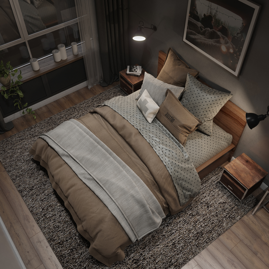 + то что это интерьер для любителей походов можно понять по фото над кроватью...ну такое.