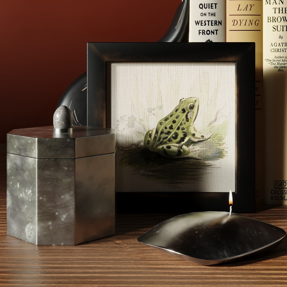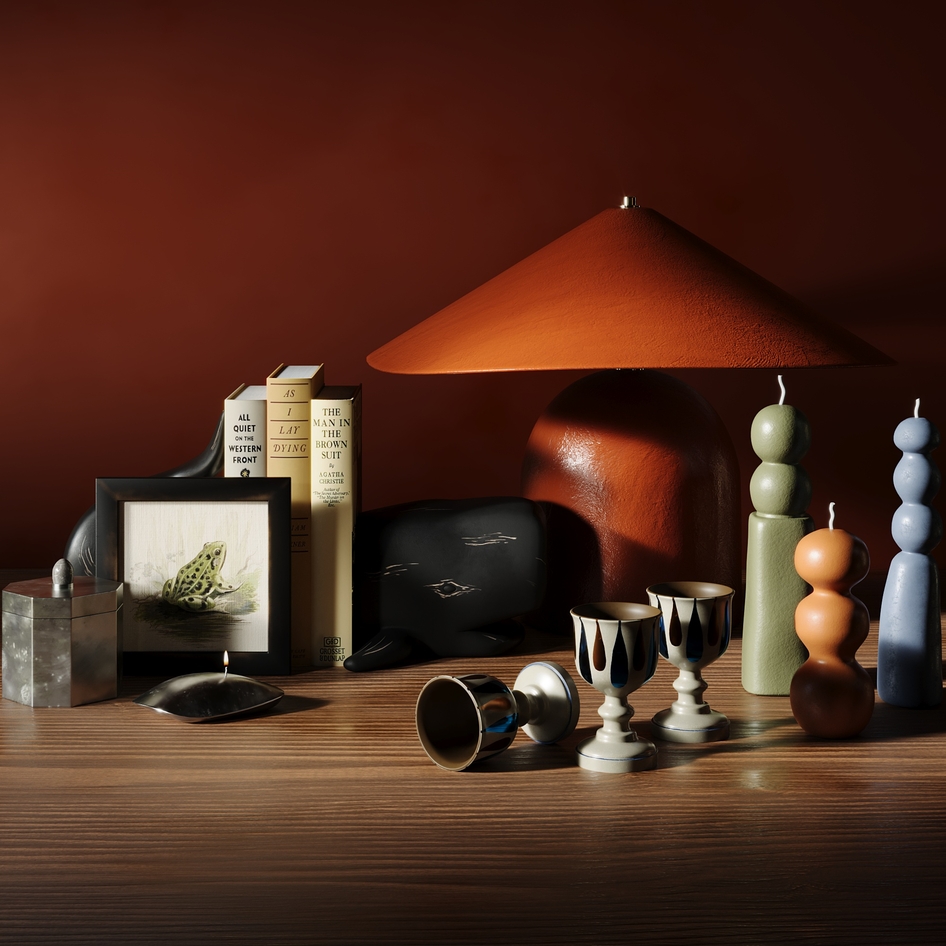 The color palette and material choices are truly elegant, giving off a luxurious and refined atmosphere. Lighting is handled beautifully, creating a warm and inviting mood. Just one small detail I’d like to mention: some objects like the books and glasses appear too tightly stuck to the surface of the table. A subtle gap or soft shadow between them could enhance realism even further.