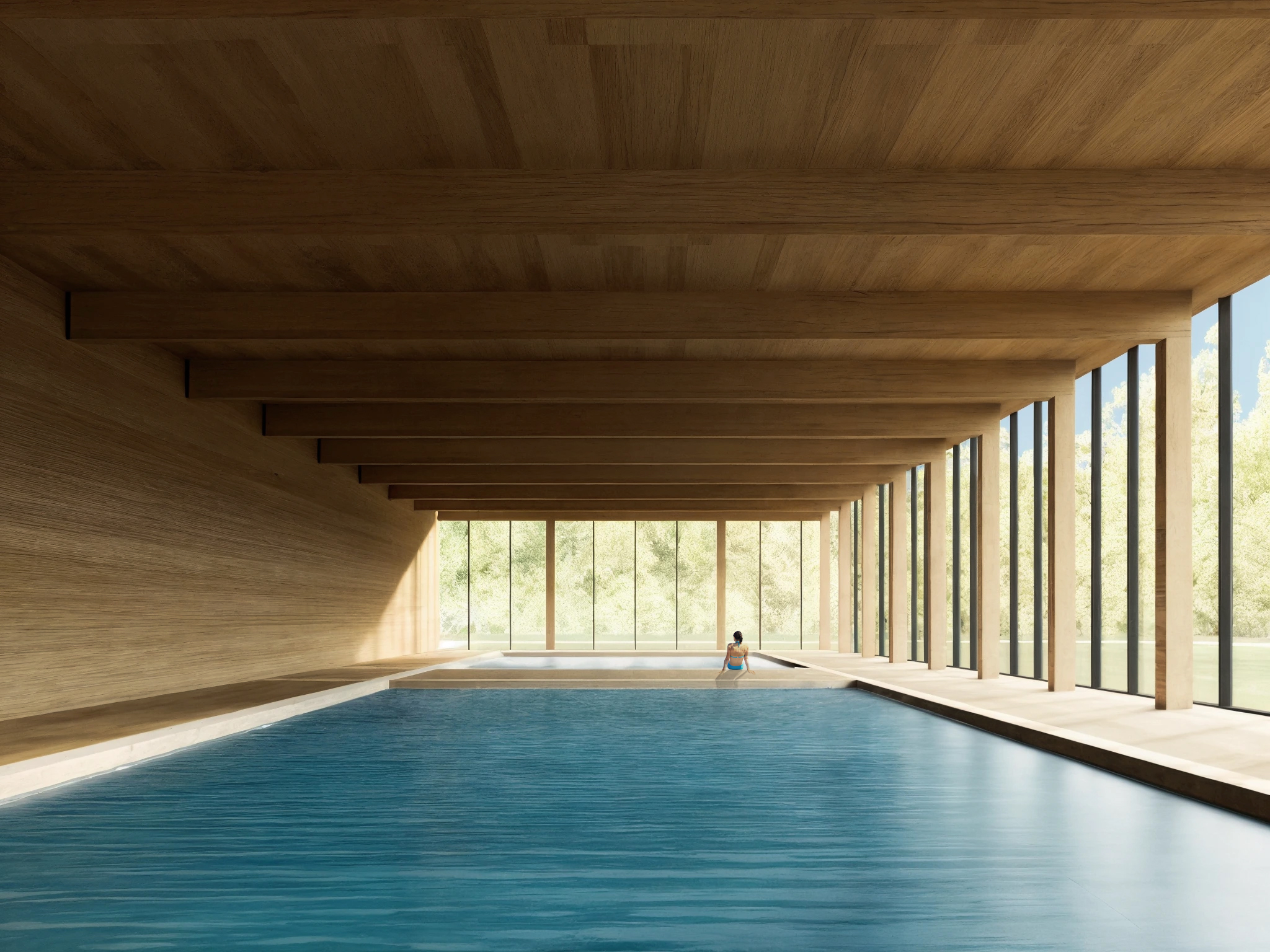 красиво, но по идее внутри такое помещение не не может быть с монолитным потолком и стенами, нужна рекуперация воздуха, вентиляция, нужно как-то удалять влагу из воздуха с полов, иначе все будет покрыто плесенью уже через месяц