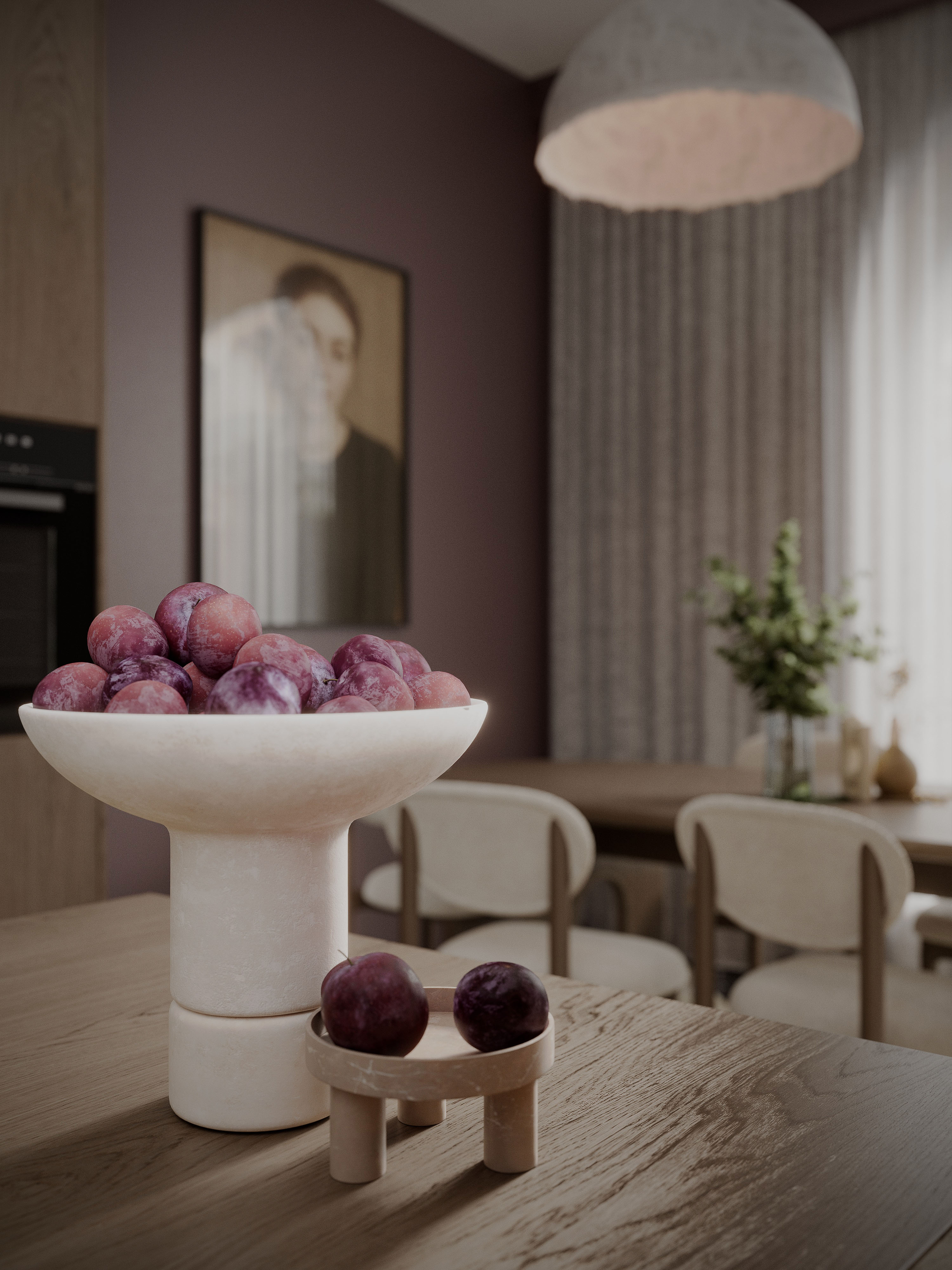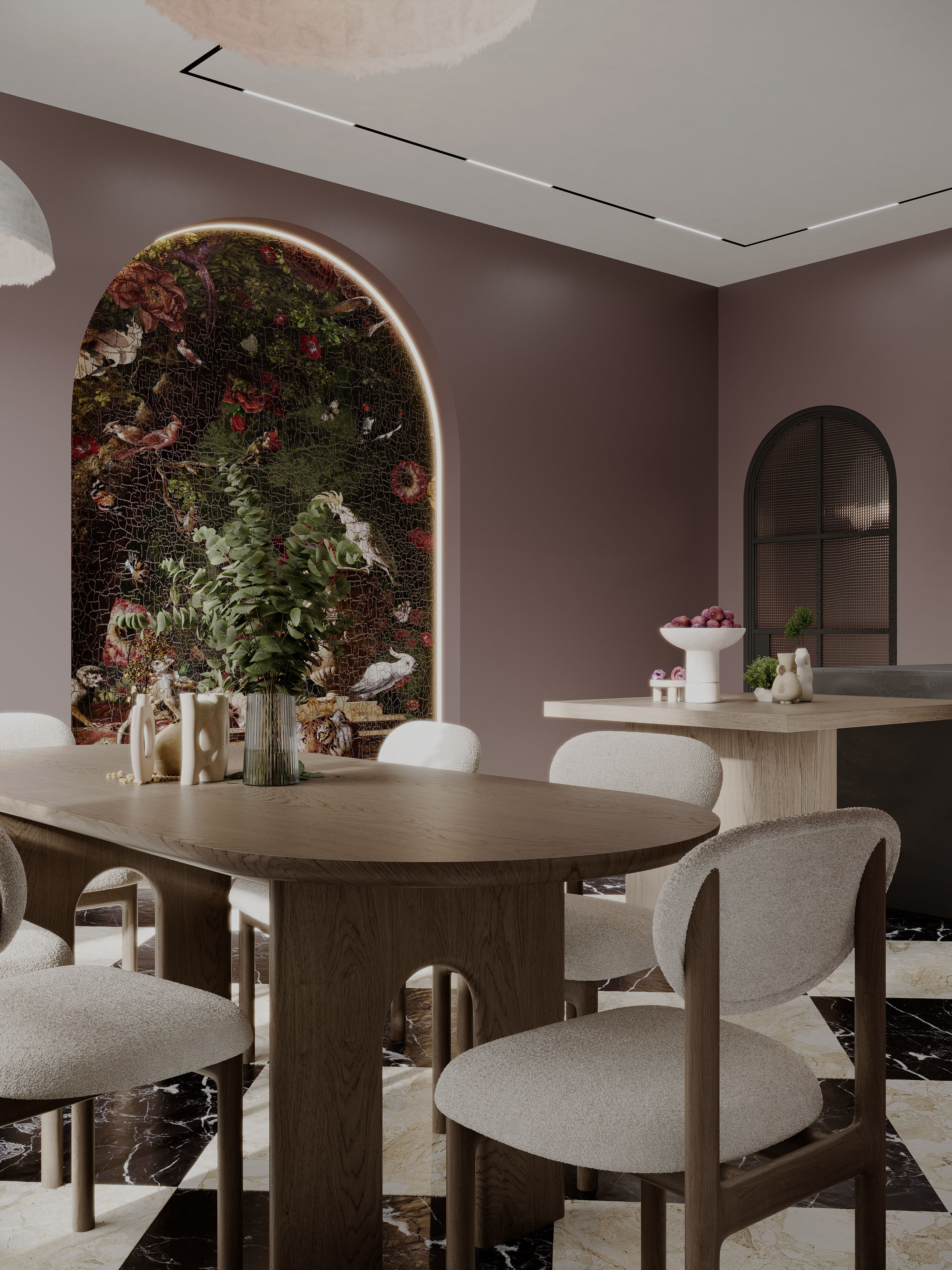Современная простота и изящные детали ар-деко объединяются в этой кухне и столовой. Натуральное дерево, утончённый мрамор и тёплые оттенки создают вдохновляющее и гармоничное пространство.