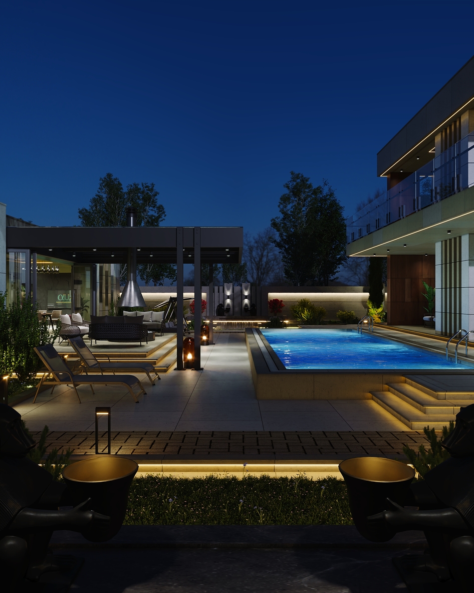 Современная вилла в Туркменистане является воплощением уюта и статусной роскоши, особенно раскрывая свою эстетику в вечерние часы, когда в игру вступают архитектура со световыми сценариями.