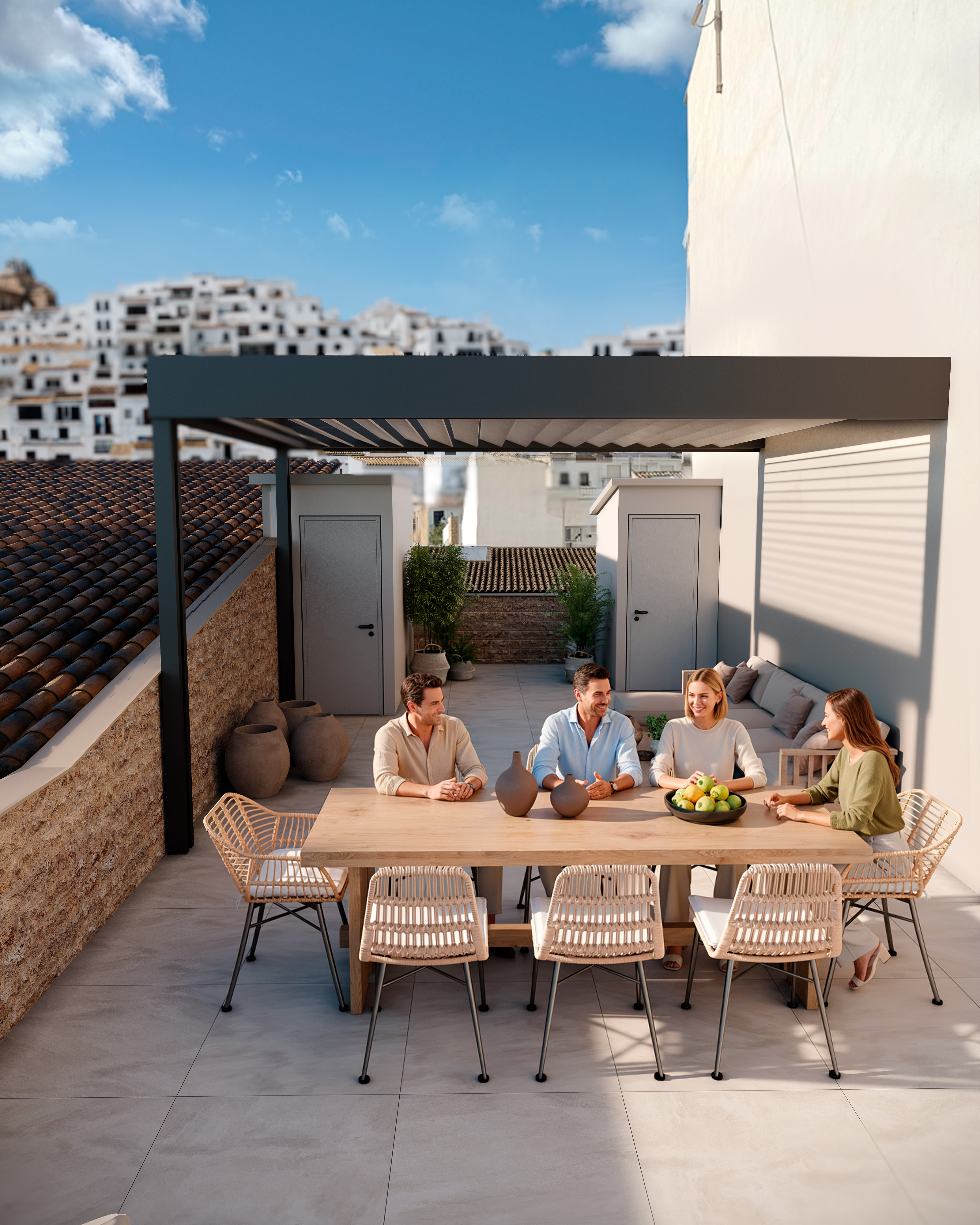Дизайн-концепт и 3D-визуализация частной террасы в Испании. Главной целью проекта было передать атмосферу средиземноморского тепла и эстетику «тихой роскоши». В основе визуального ряда — натуральные материалы, мягкий солнечный свет и гармония природных оттенков. ( На первом кадре много неба для текста, так как это обложка. В конце вариант с текстом)
