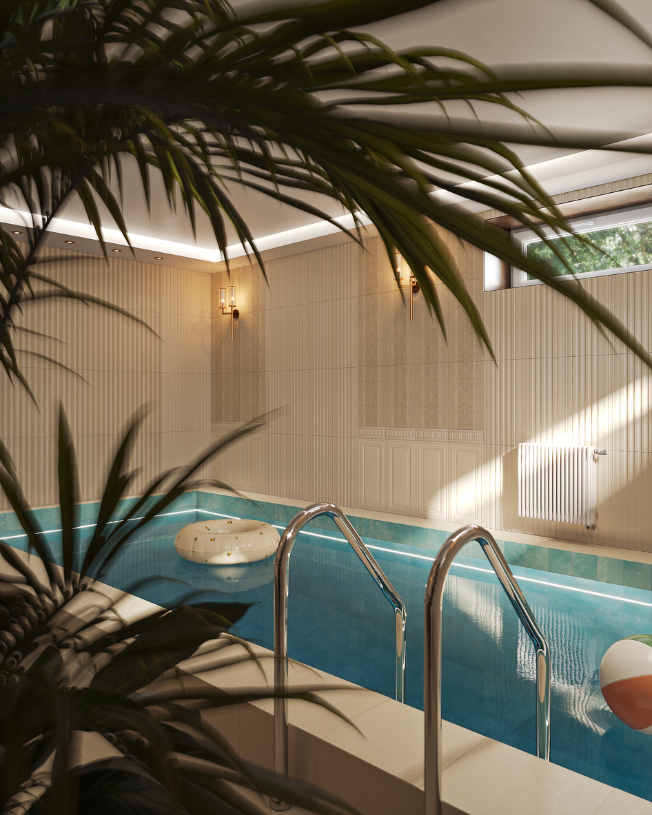 Спа в частном доме. Зона бассейна. Все картинки проекта: