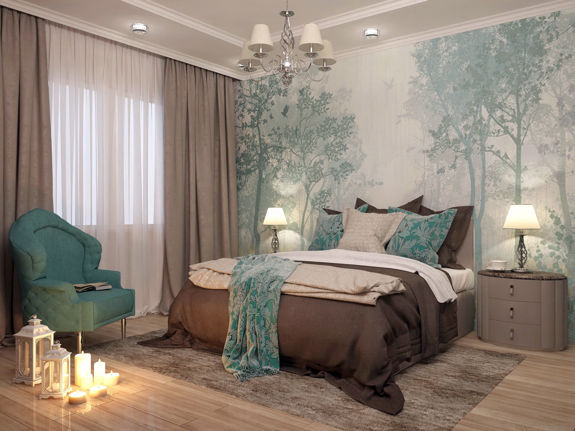 красивые обои,загадочные, только я бы спинку кровати увеличила, или подушки уменьшила,не закончено это место выглядит, по визу профи подскажут, я вижу пол глянцевый слишком либо это перепаркет, либо недоламинат, не понятно, и кресло не в масштабе