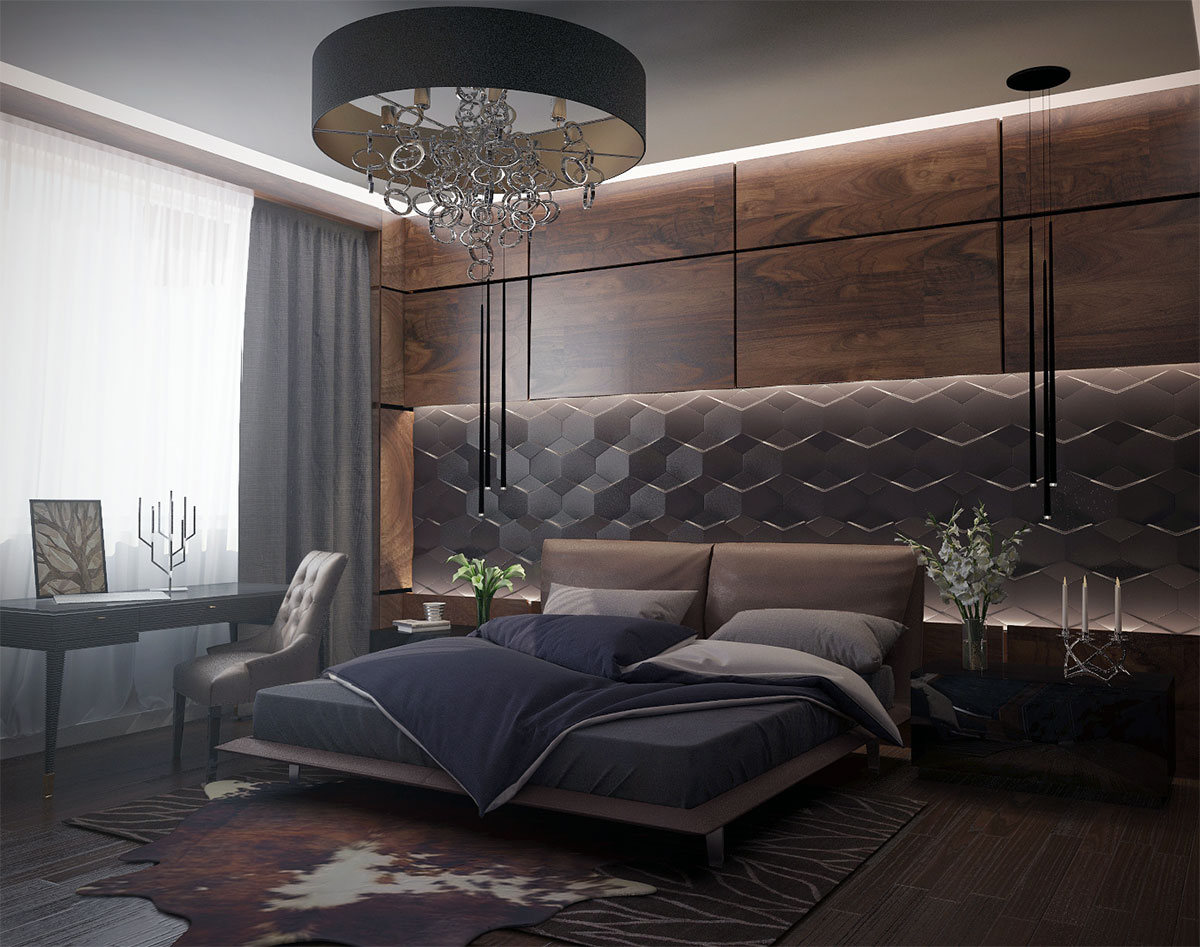 Дизайн спальни для молодой пары, которая любит современный дизайн, дерево в отделке и стильных дизайнеров.