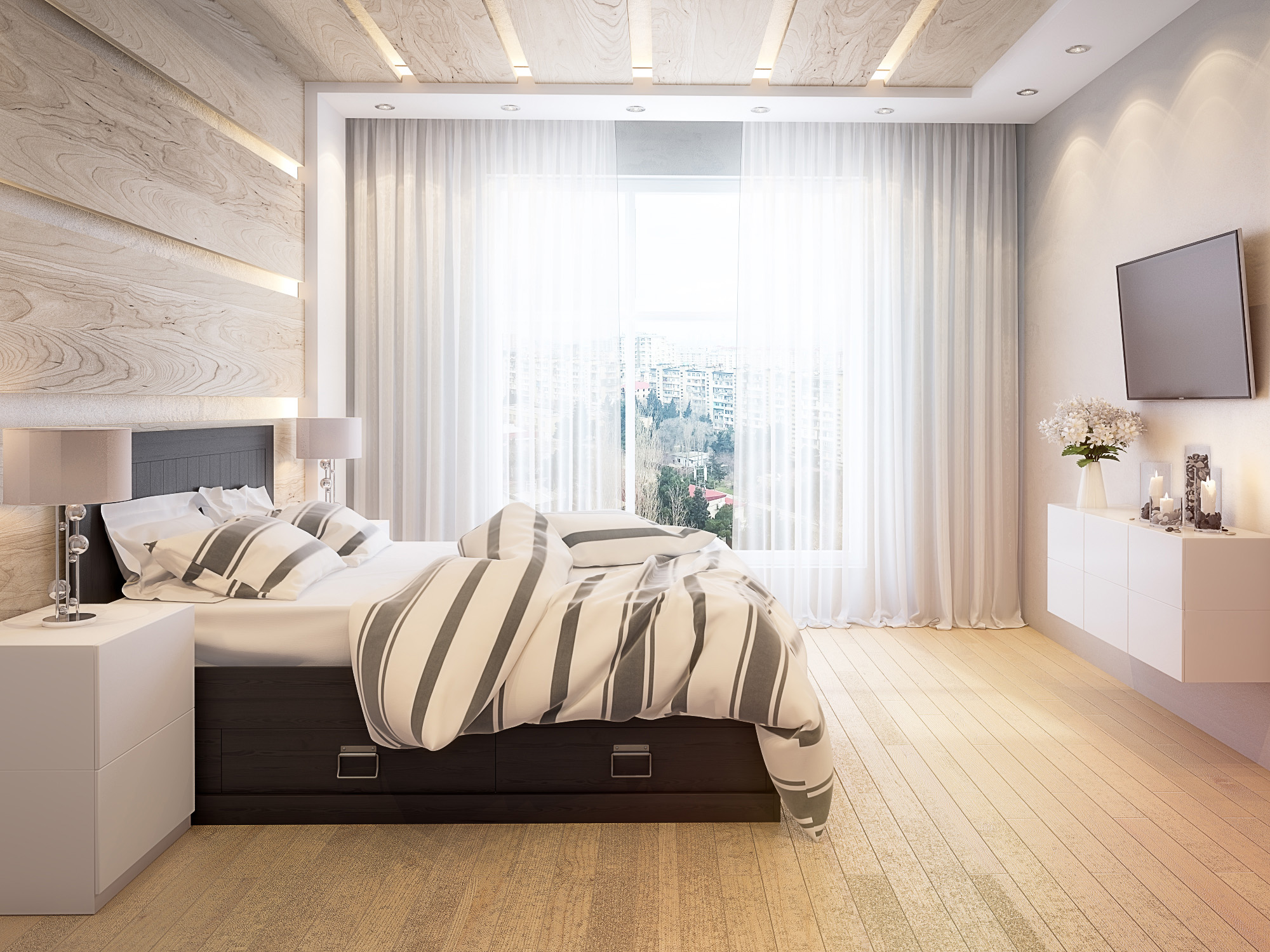 Я думаю не хватает при кроватного коврика и комната какая та пустая