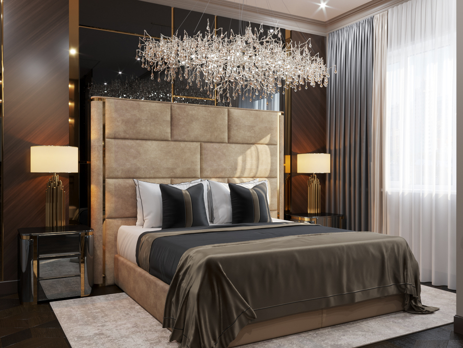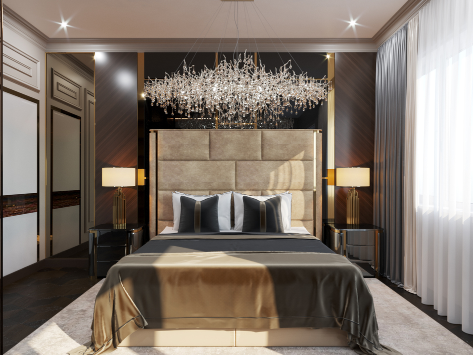 такая люстра над кроватью при потолках 2700 вообще не к месту