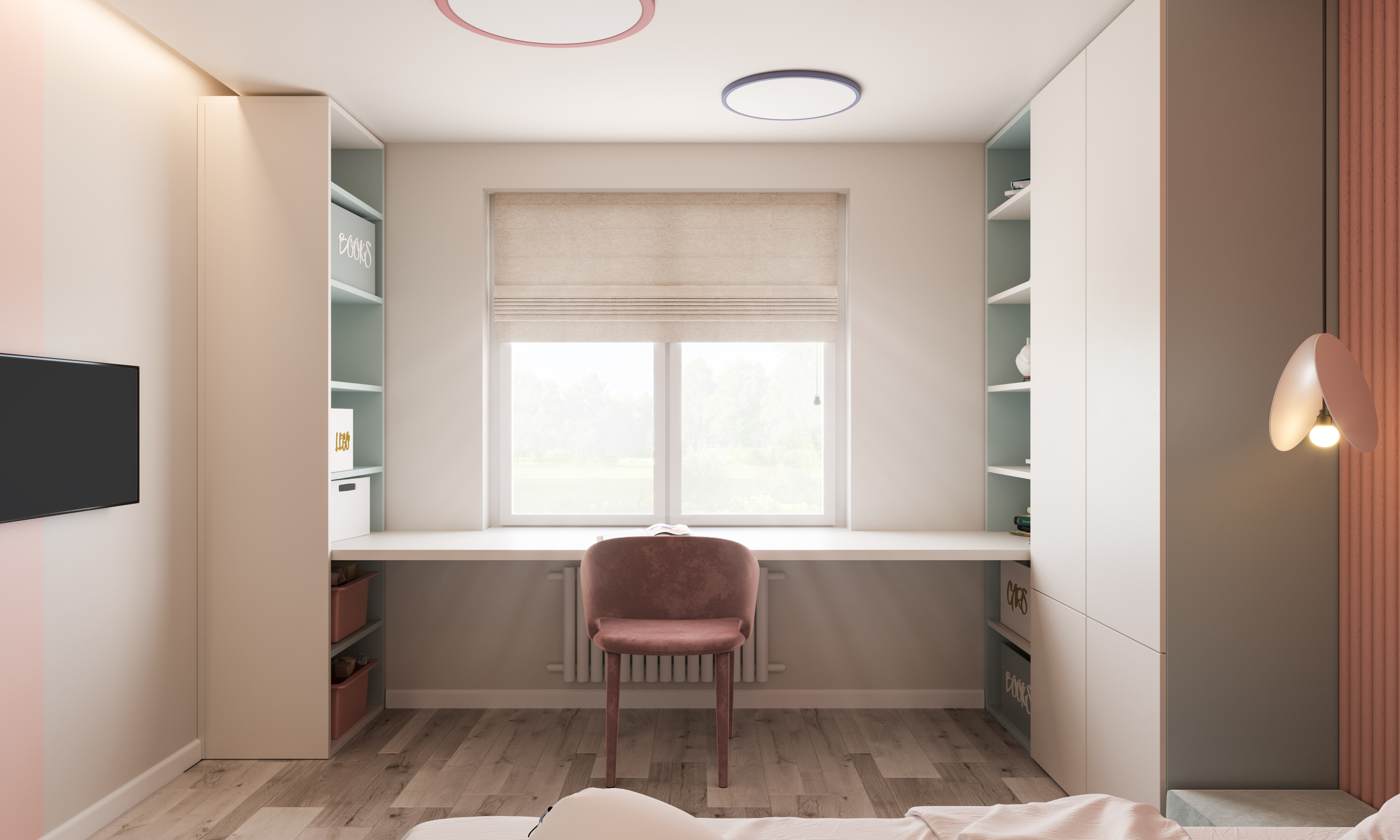 Детская спальня с вертикальными 3д панелями из гипса. -цвета подбирались исходя из вкусов заказчиков. Реализация -2020г.