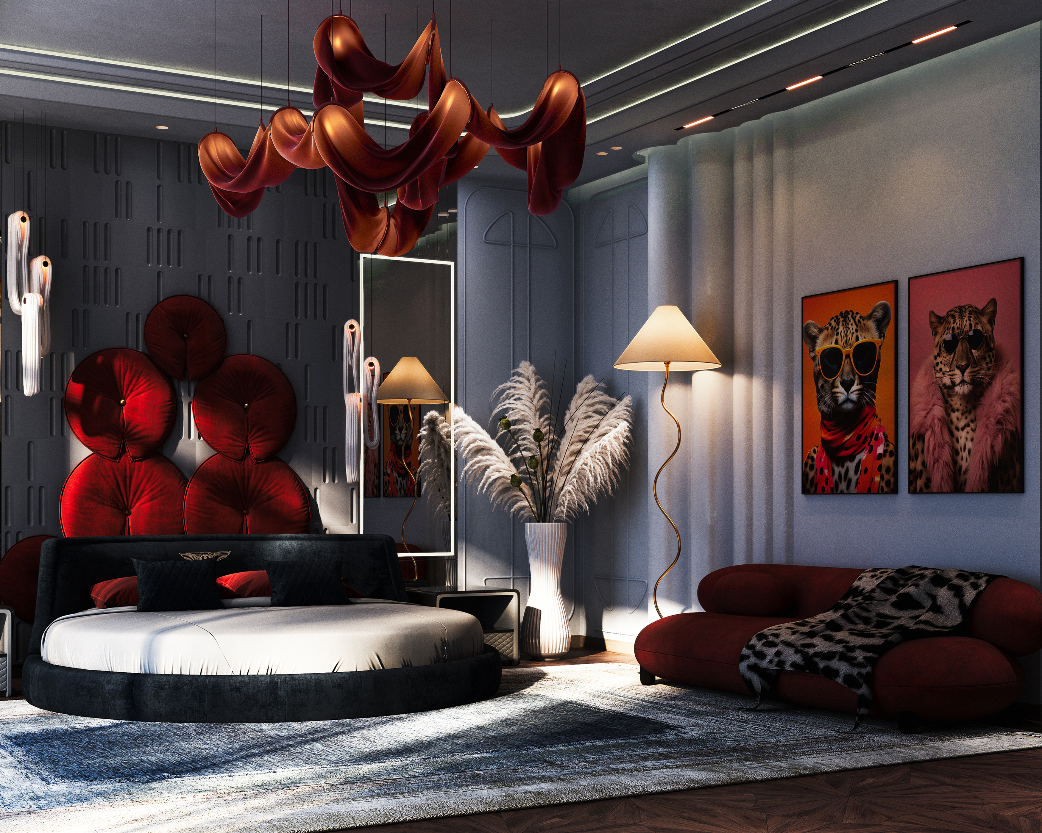 Спальня с гардеробом и стильной ванной