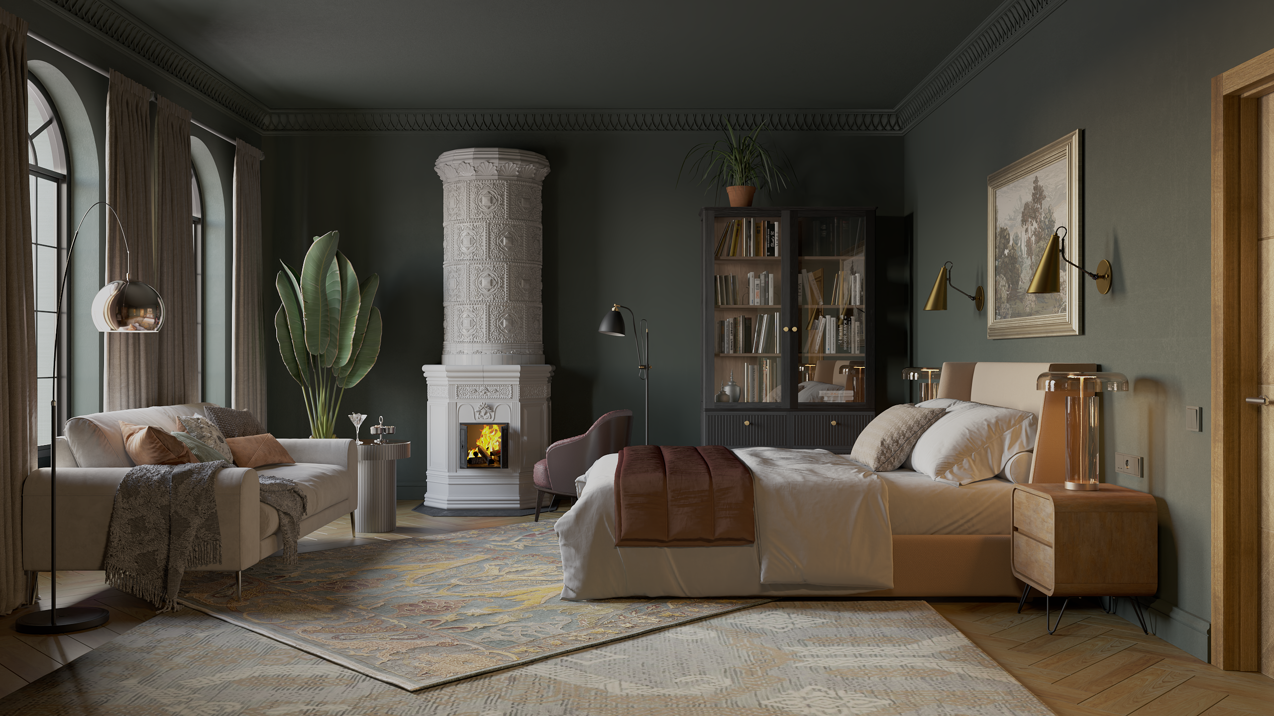 Спальня с камином