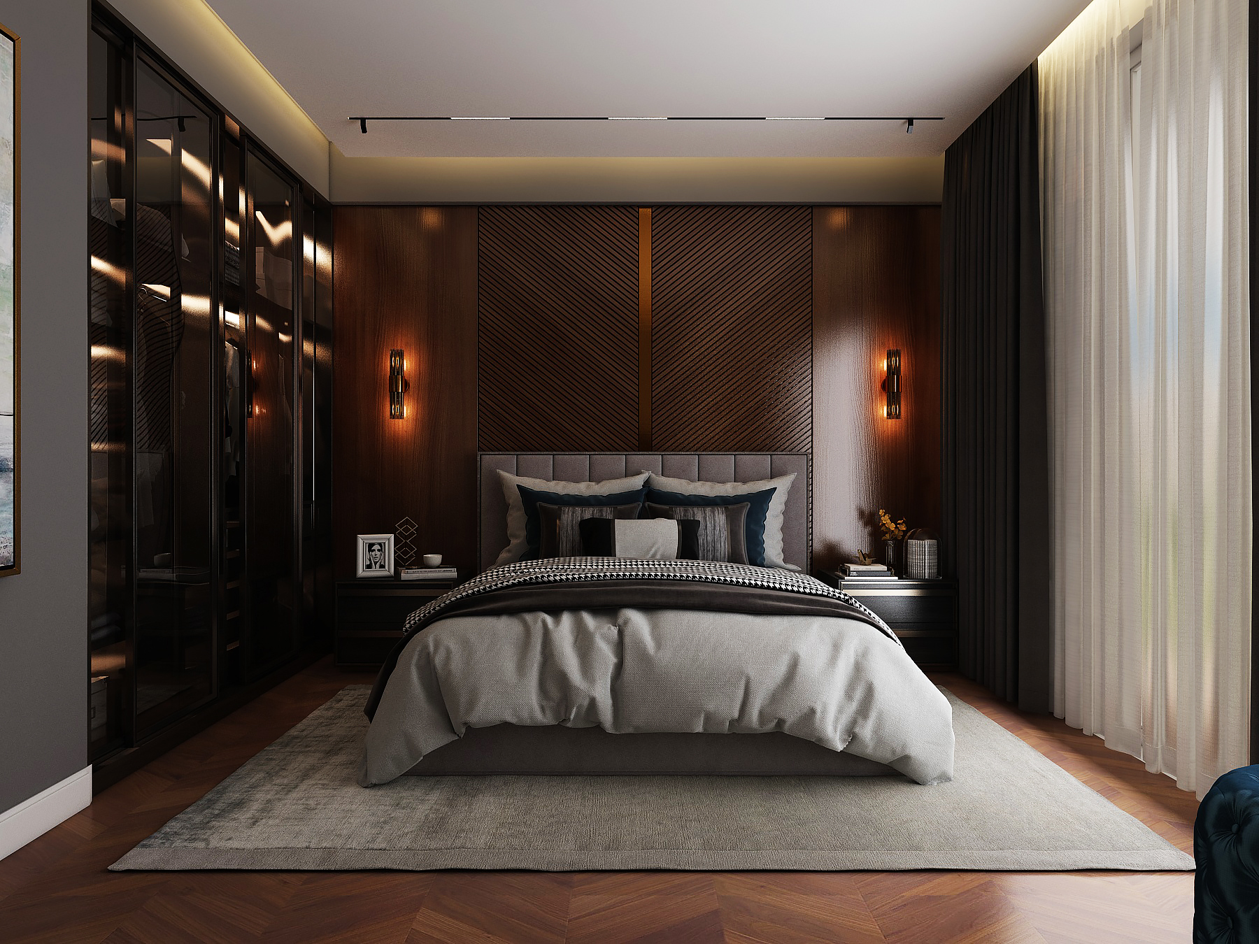 Спальня в темных тонах для молодой семьи.Всем спасибо за модели!!!