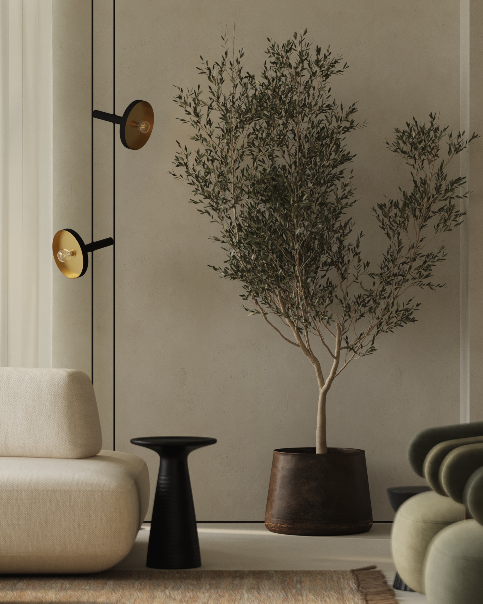 Красивые деревья оливы в современных белых горшках. Набор растений 1227