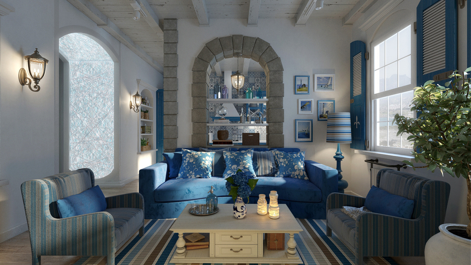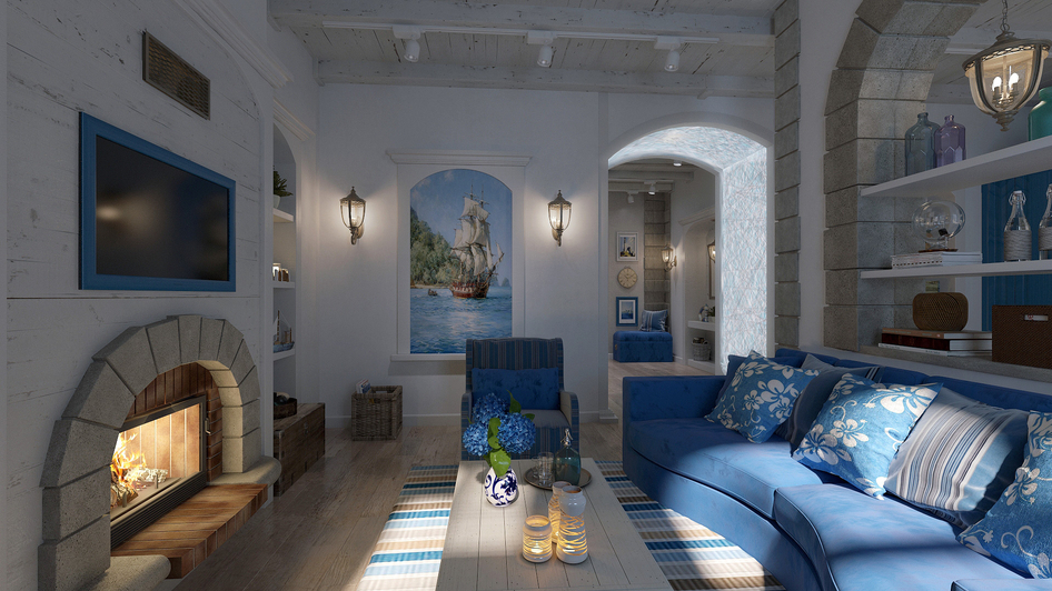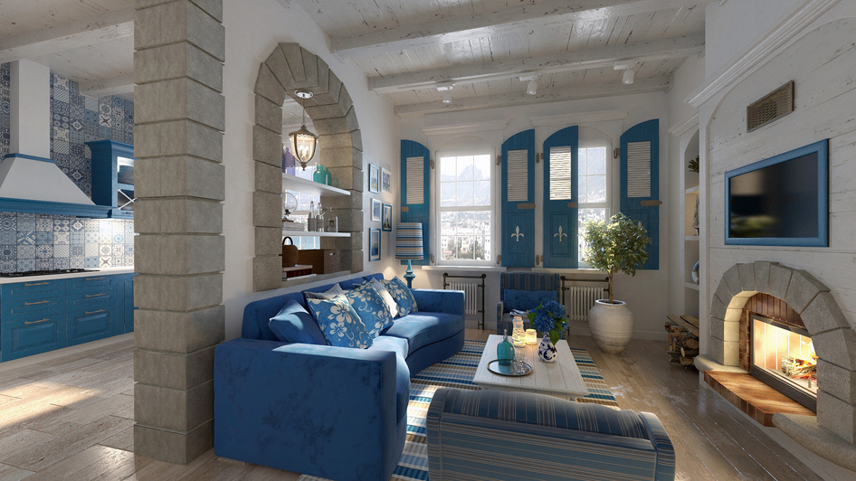 средиземноморский стиль интерьер визуализация