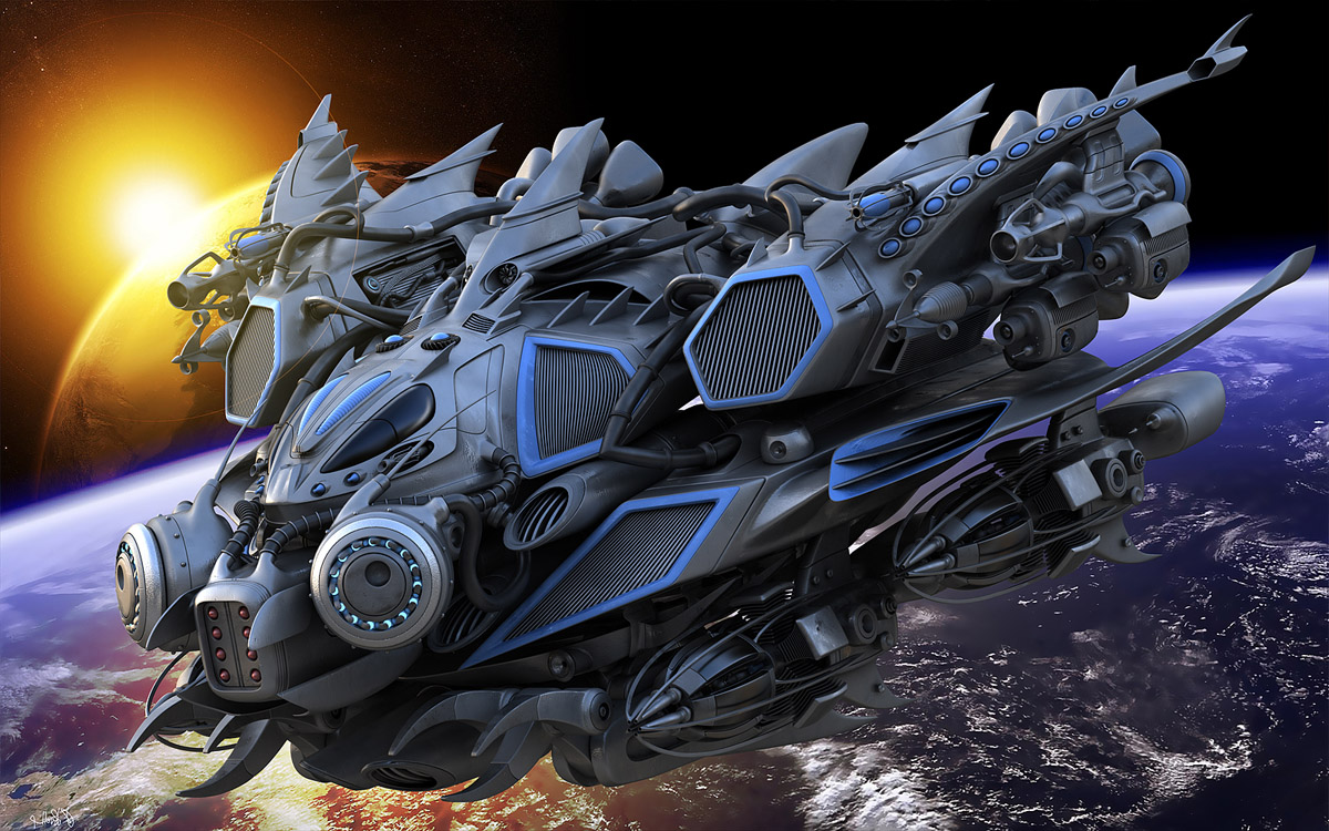 Работа для конкурса на 3dmir. Сначала пришел в голову образ, потом накидал пару скетчей, начал моделировать. Первые 2 раза запорол модель, хотел бросать, но потом дело пошло. Главное в таких работах детализация и сложный полигональный моделинг, с минимумом примитивов. :-)