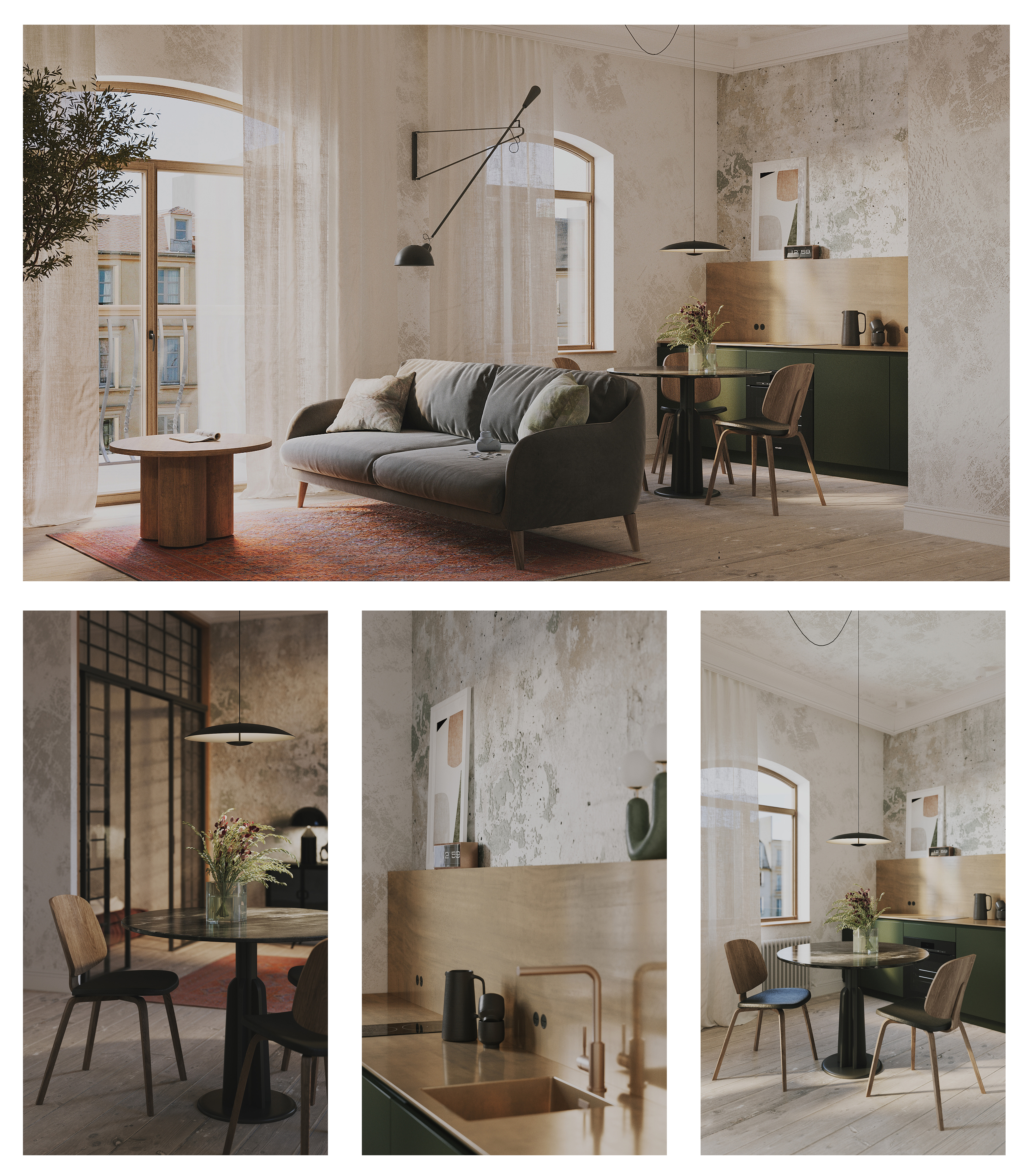 As a visualizer, I remember most of all the wall with beautifully scuffed plaster, which was extremely difficult to repeat. After all, no specially "broken" texture will be able to repeat an existing, "accidentally collapsed" plaster.