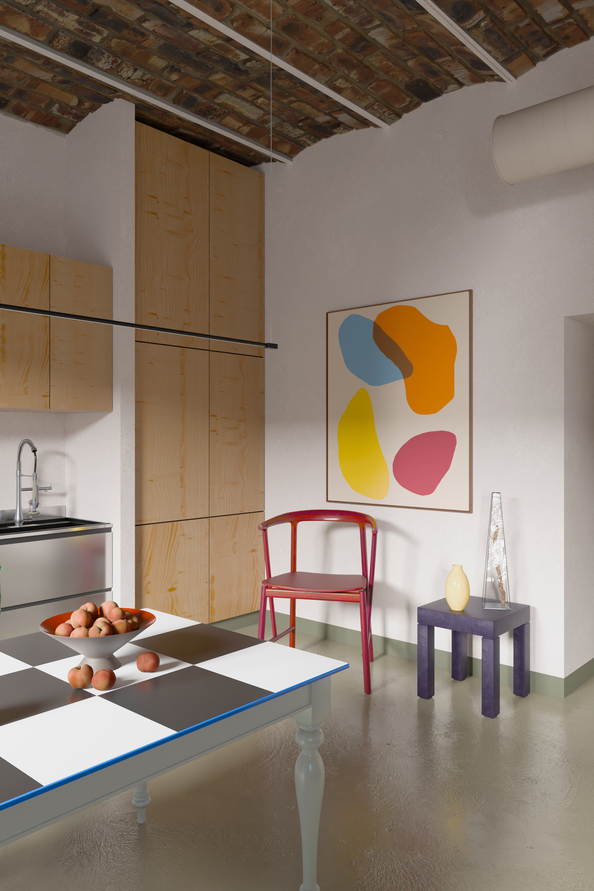 Чуть больше половины всех объектов в сцене сделана собственноручно, другая часть была создана/скорректирована из готовых моделей взятых с blenderkit для попадания в реальные объекты с фото.