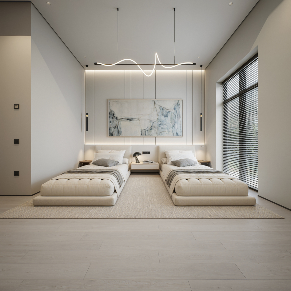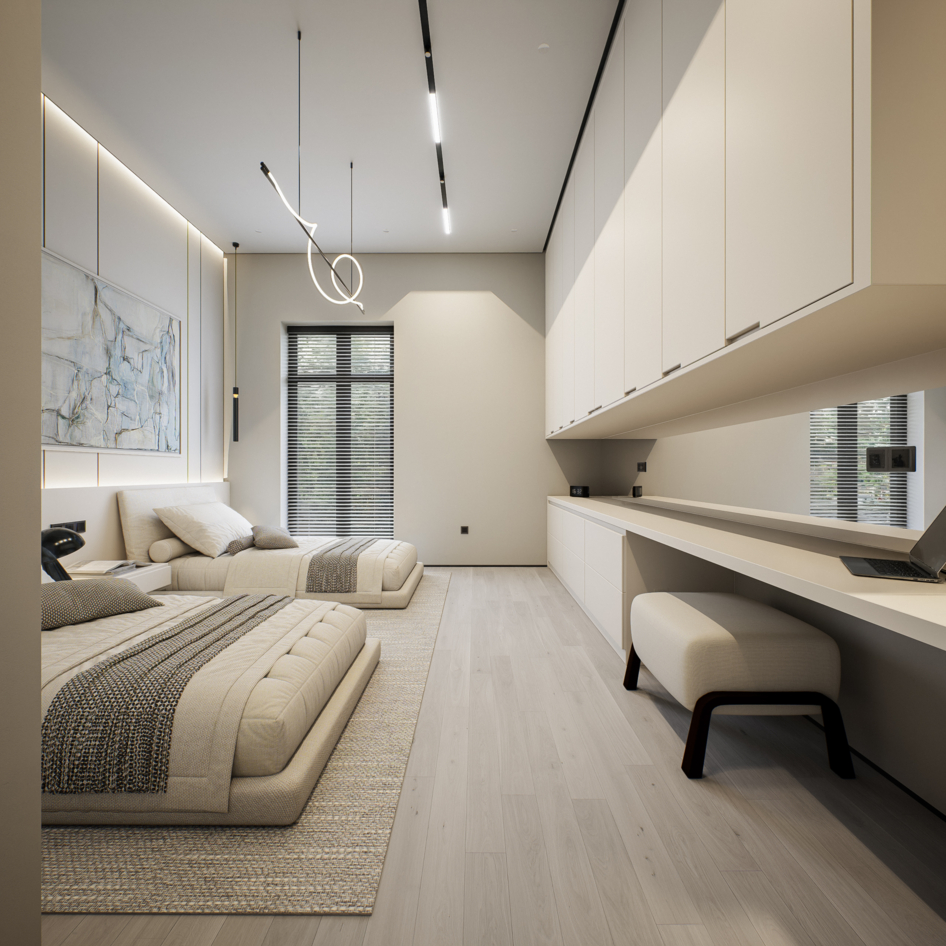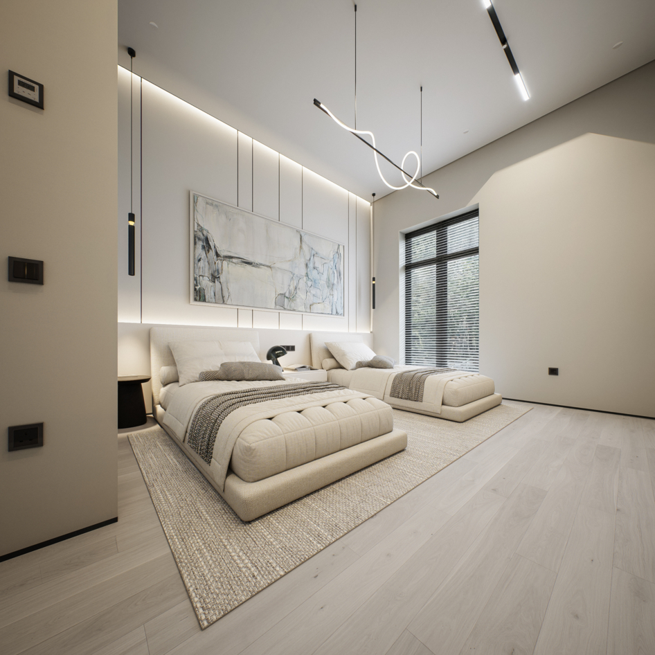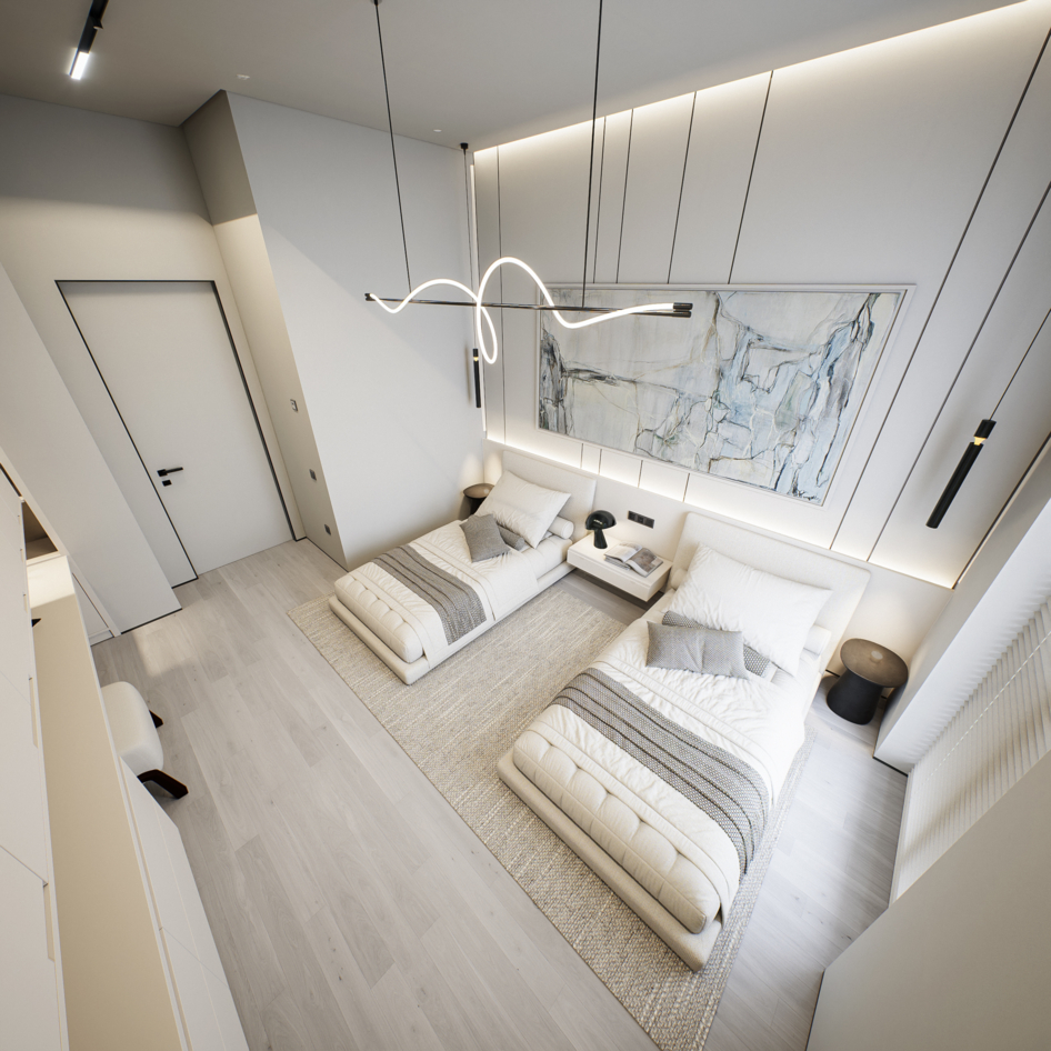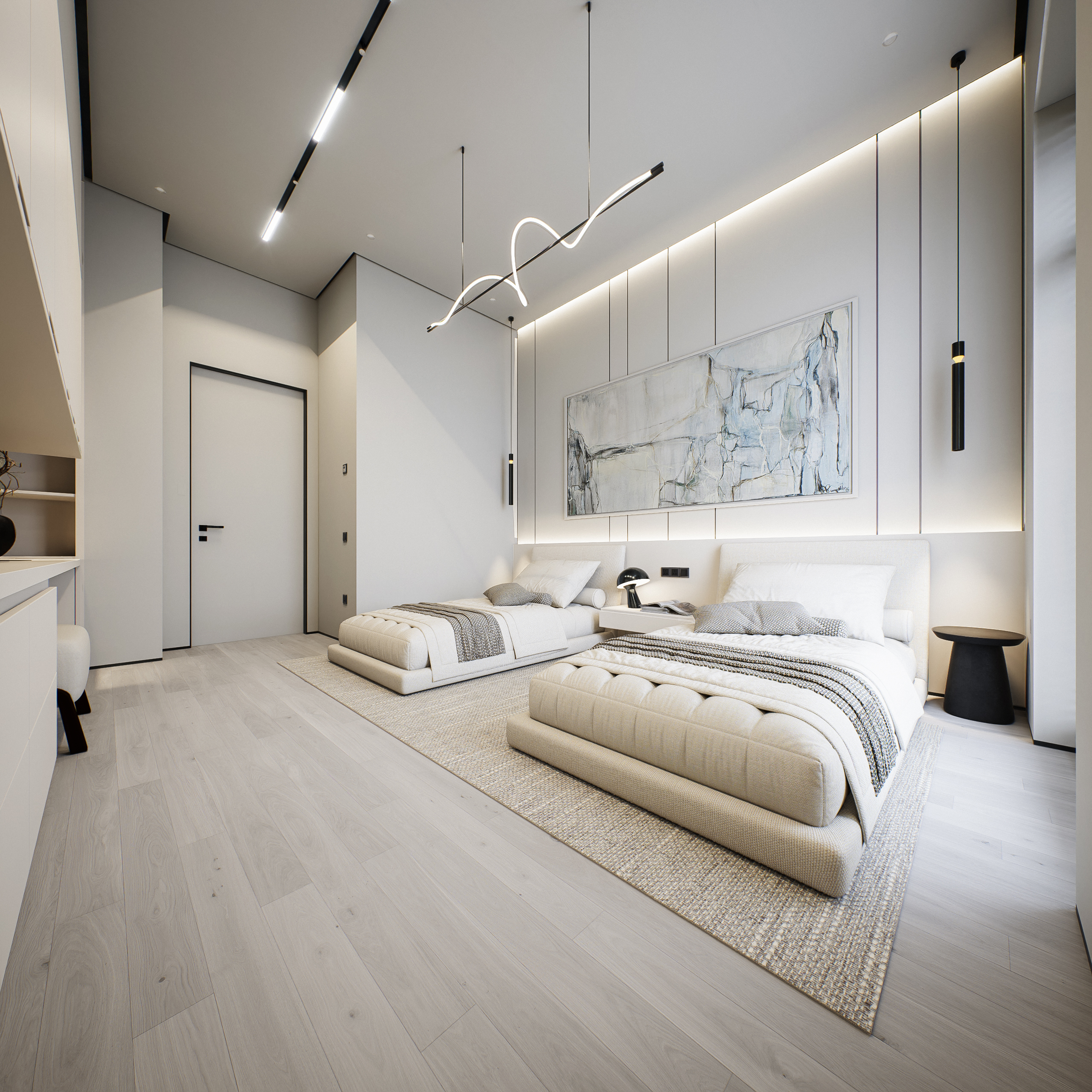 Я долго размышлял о монохромном интерьере, и в итоге воплотил его в этом проекте.