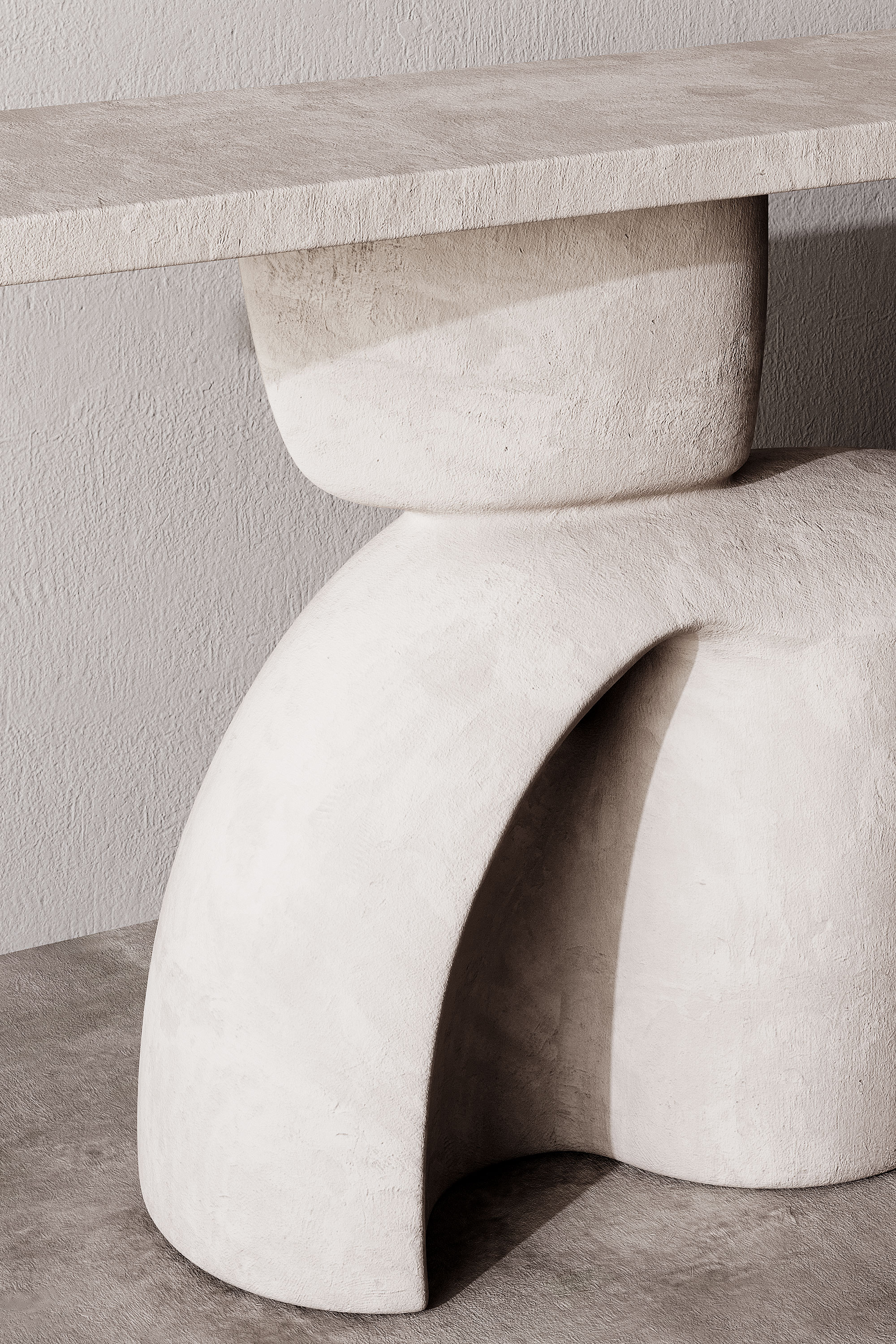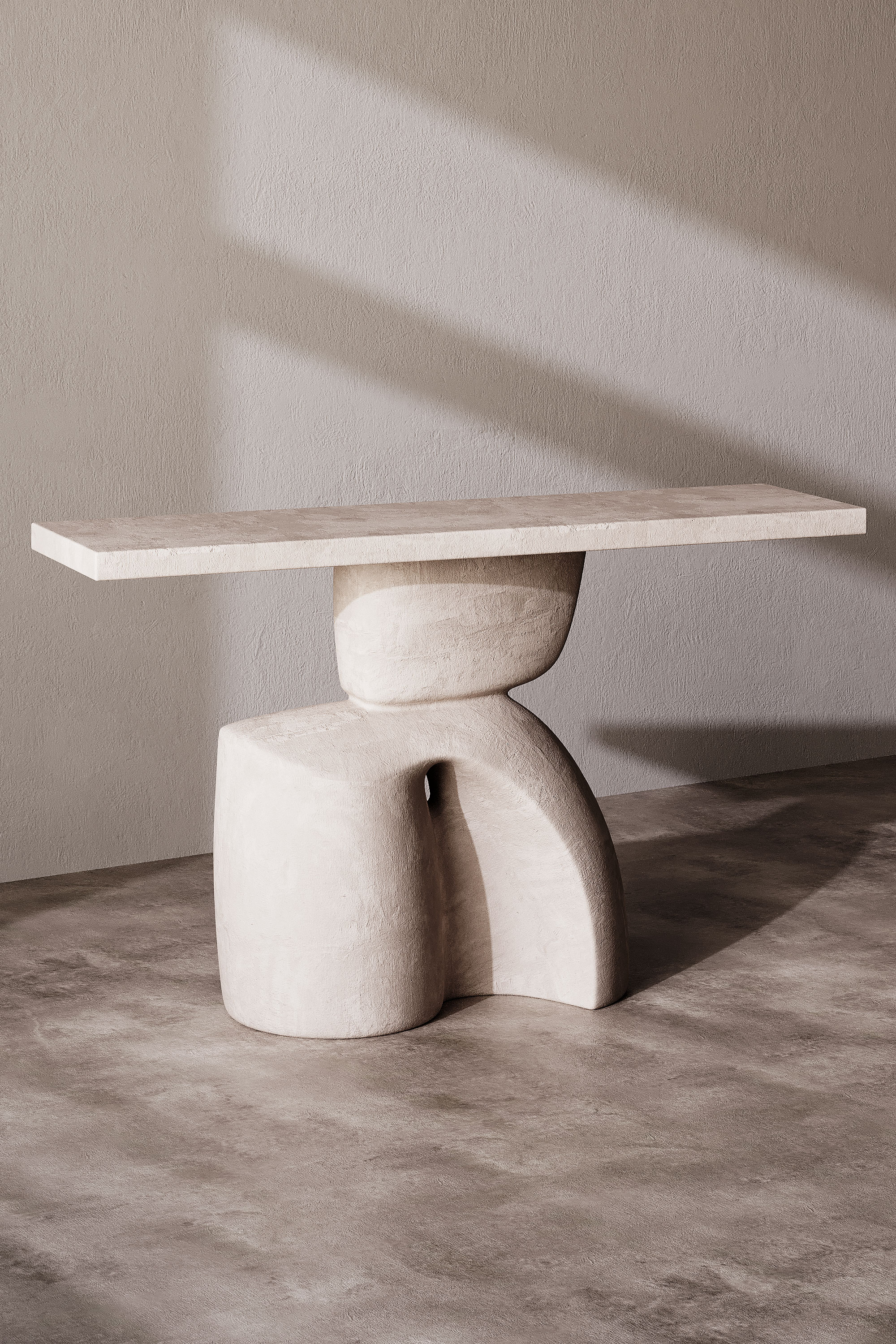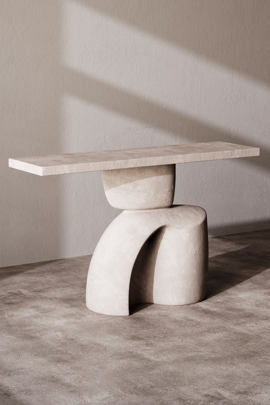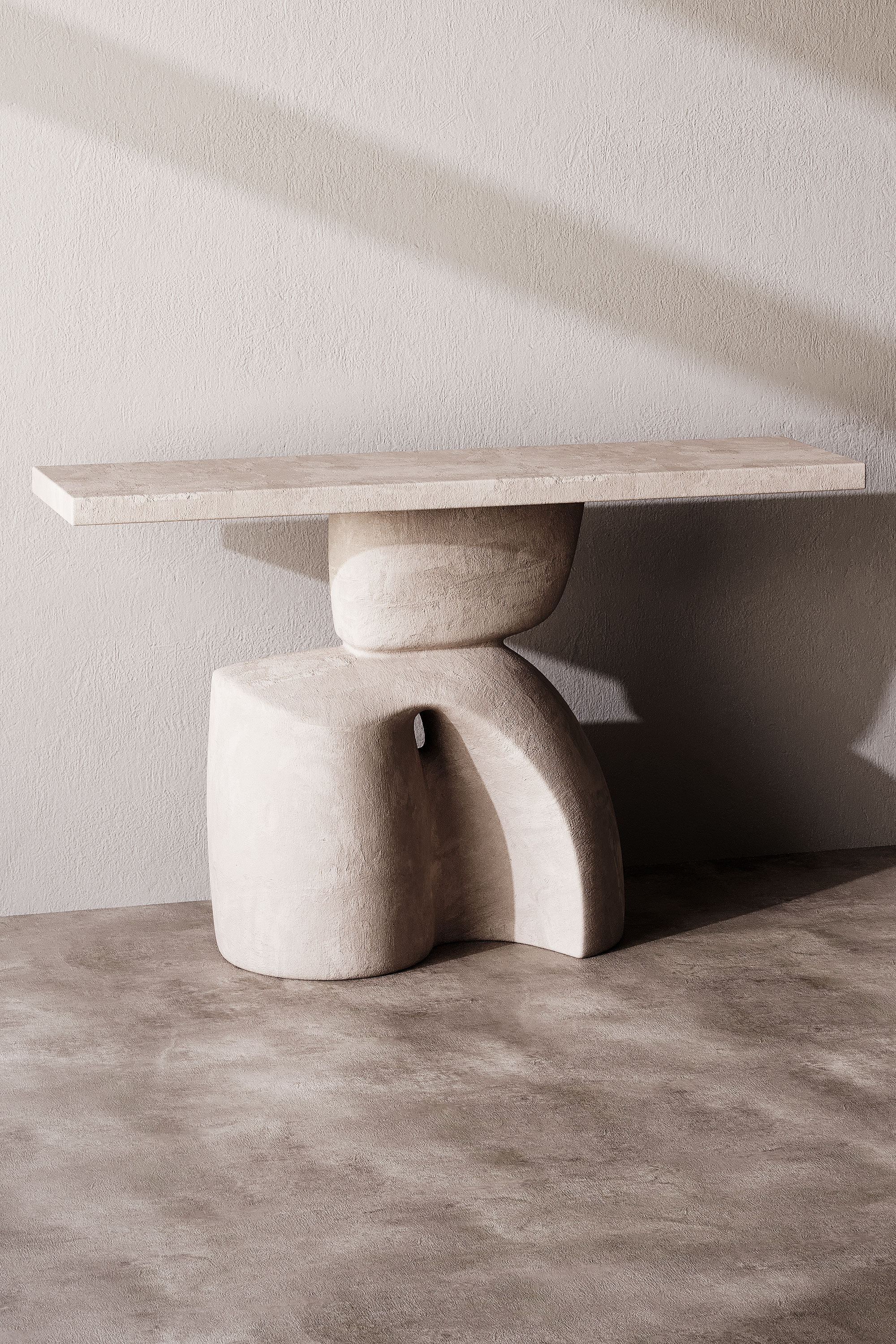 Минималистичный консольный стол из камня с выразительной скульптурной опорой. Дизайн выполнен в современном и арт-стиле, сочетая простую прямоугольную столешницу и массивное абстрактное основание с плавными формами. Матовая каменная поверхность с легкой фактурой придает модели натуральность и премиальный вид. Консоль отлично подойдет для современных, минималистичных и wabi-sabi интерьеров, а также для арт-пространств и дизайнерских проектов.