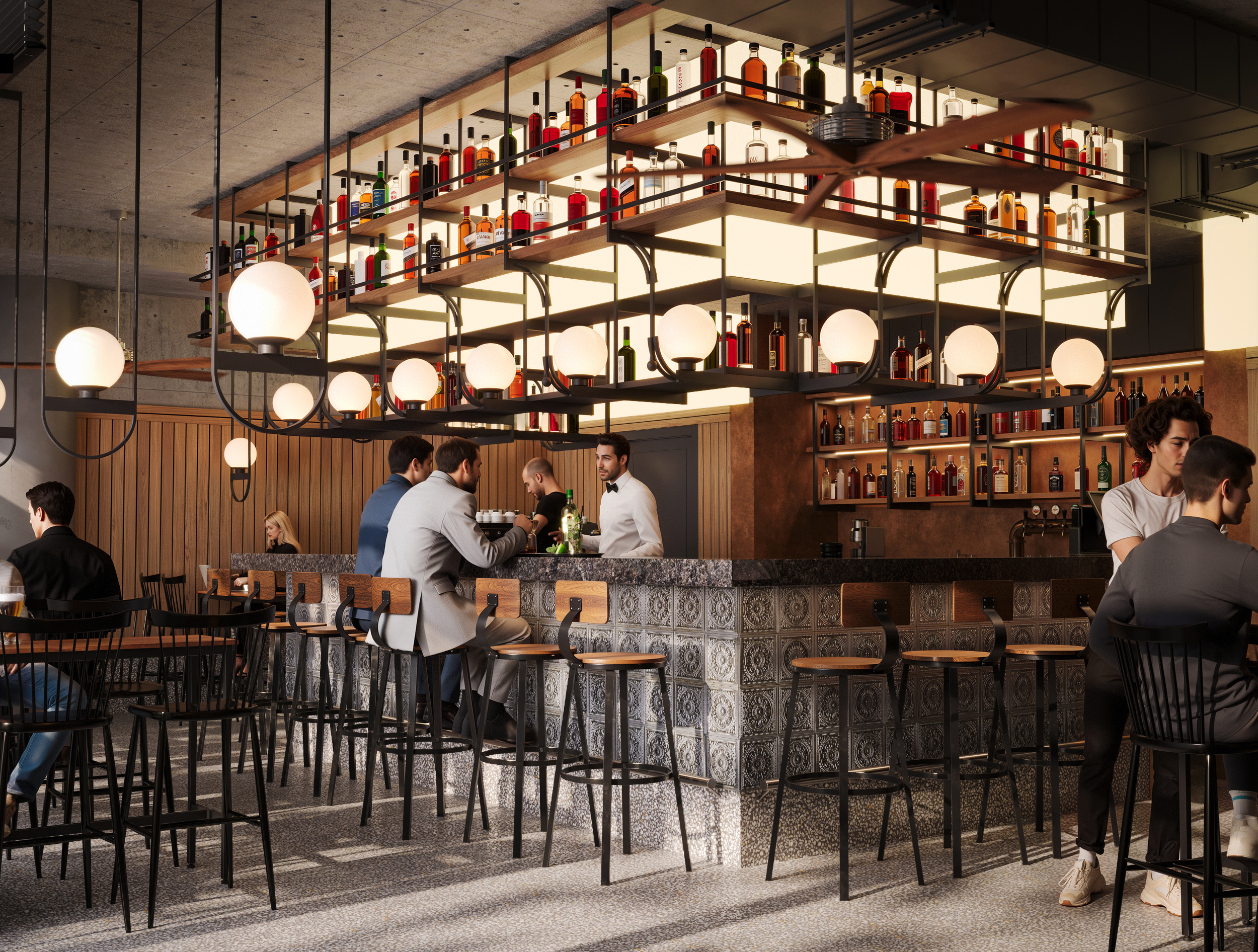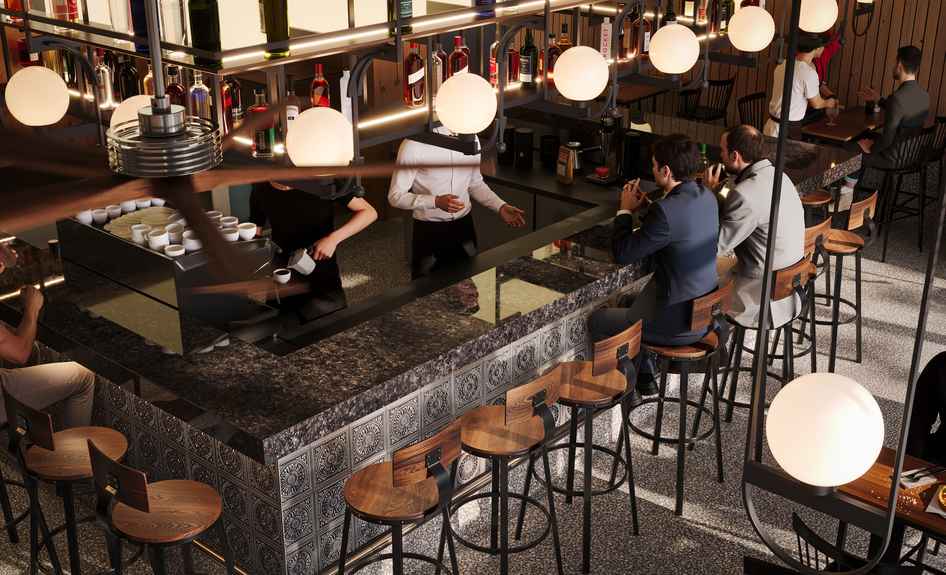 Бар в Польше. Все сделано геометрией, ничего координально нового не добавлено, аккуратно полирнул стейблом, сетку пары кадров приложу в конце.