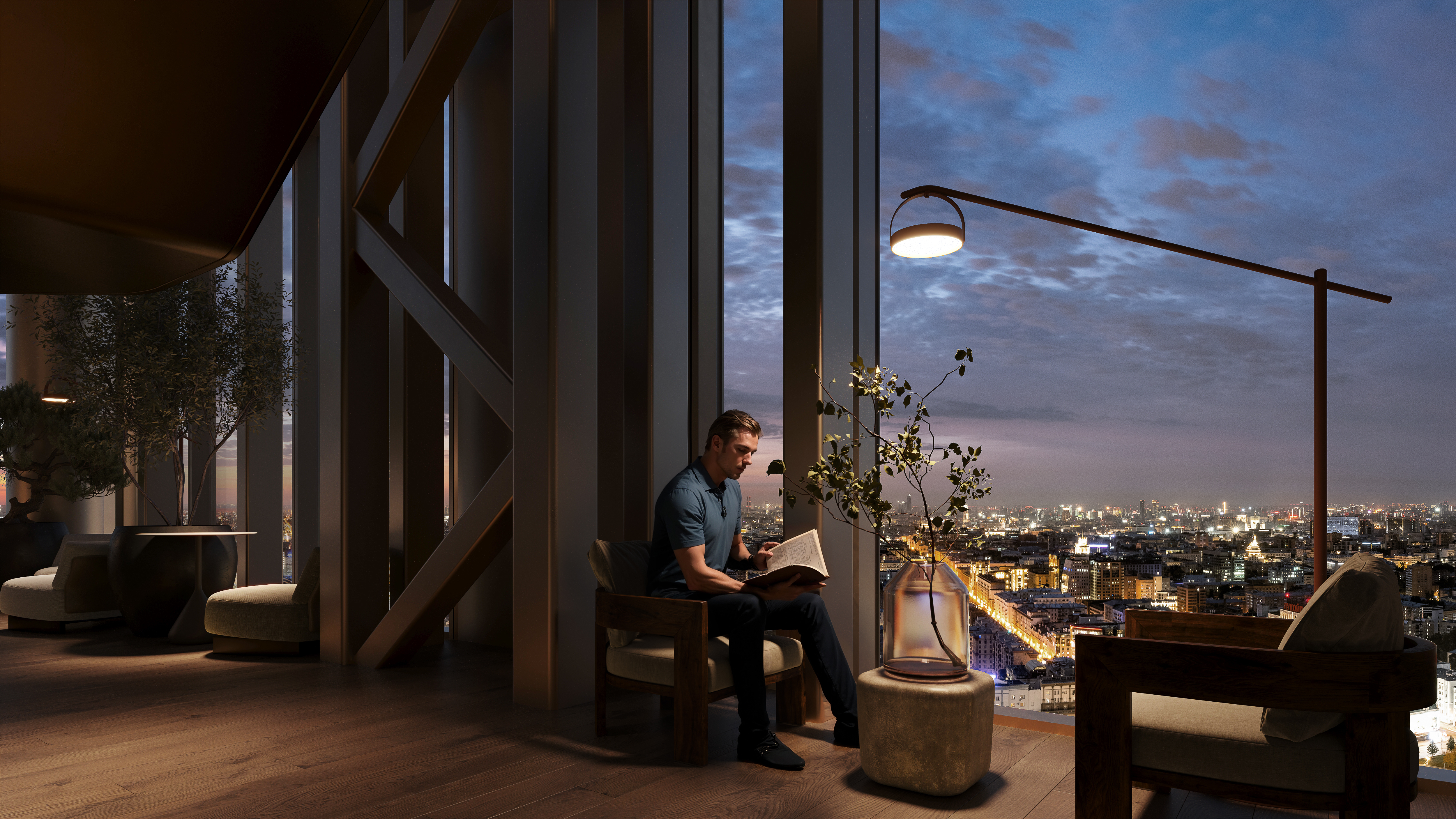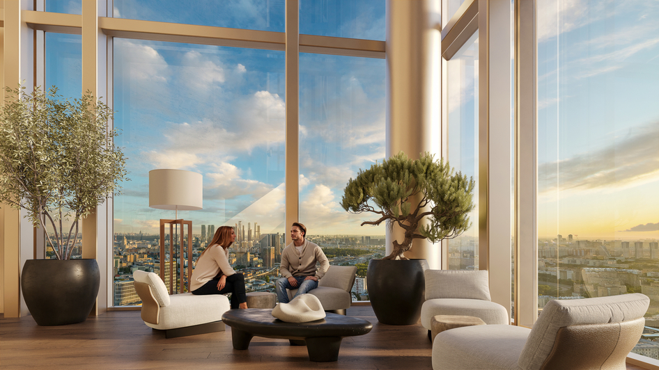 Визуализация общественной терасы в ЖК SLAVA на белорусской, Москва Дизайн Марии Комбалиной