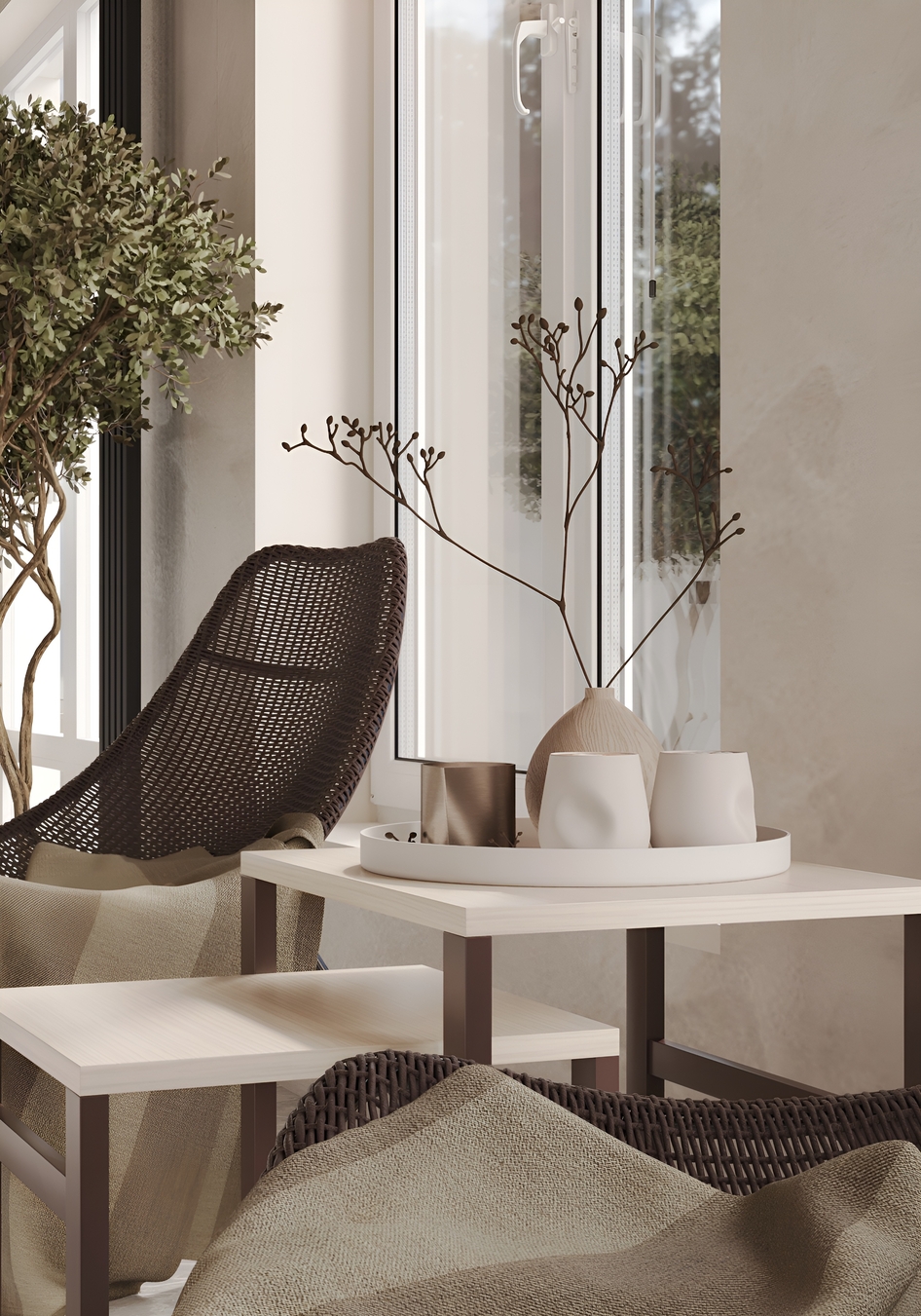 Кресло из ротанга ikea РОДВИКЕН + столики РИССНА