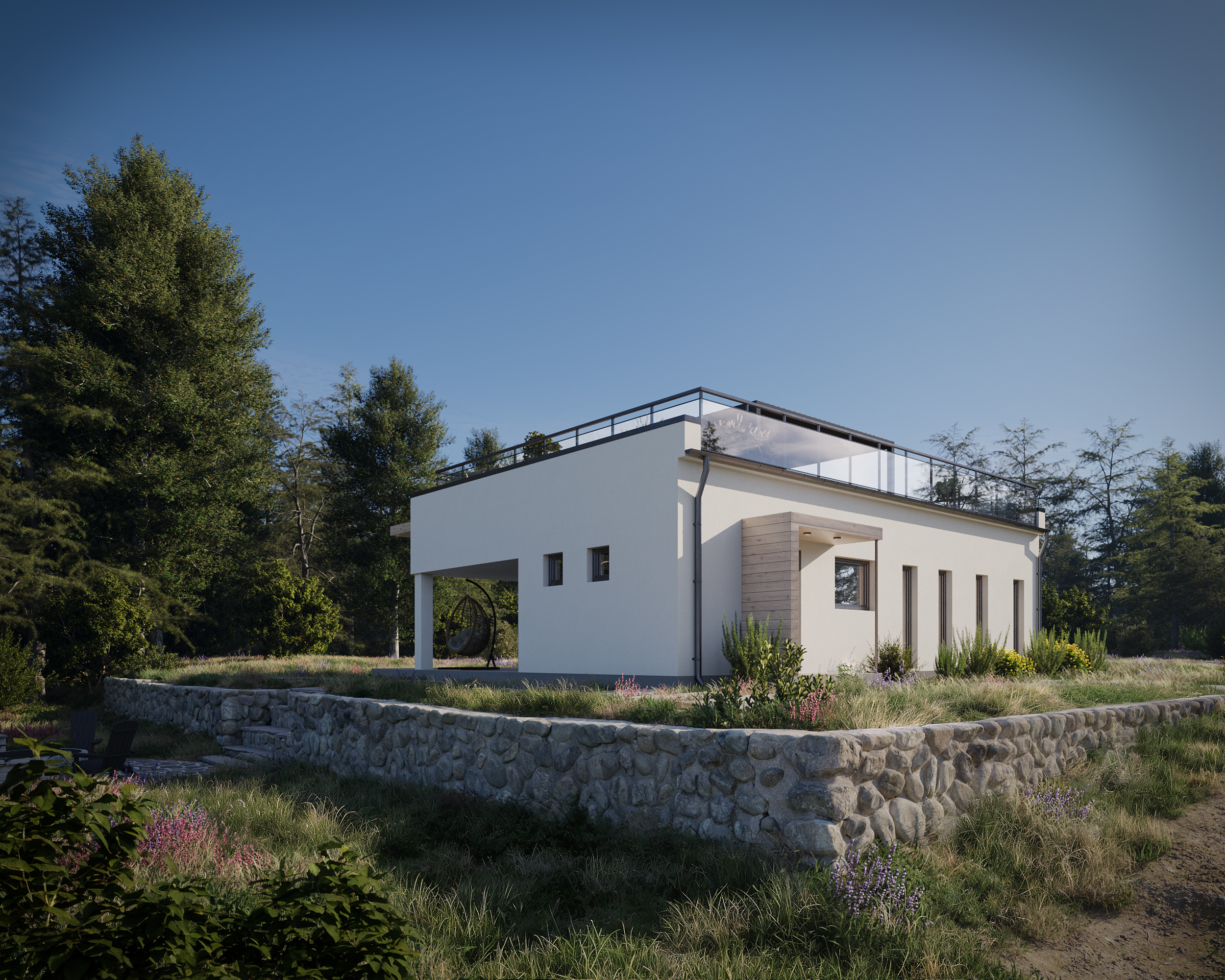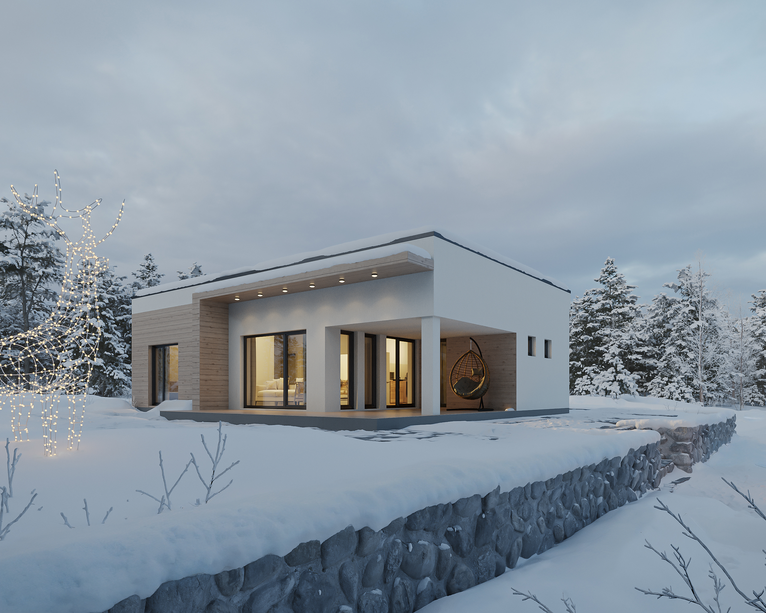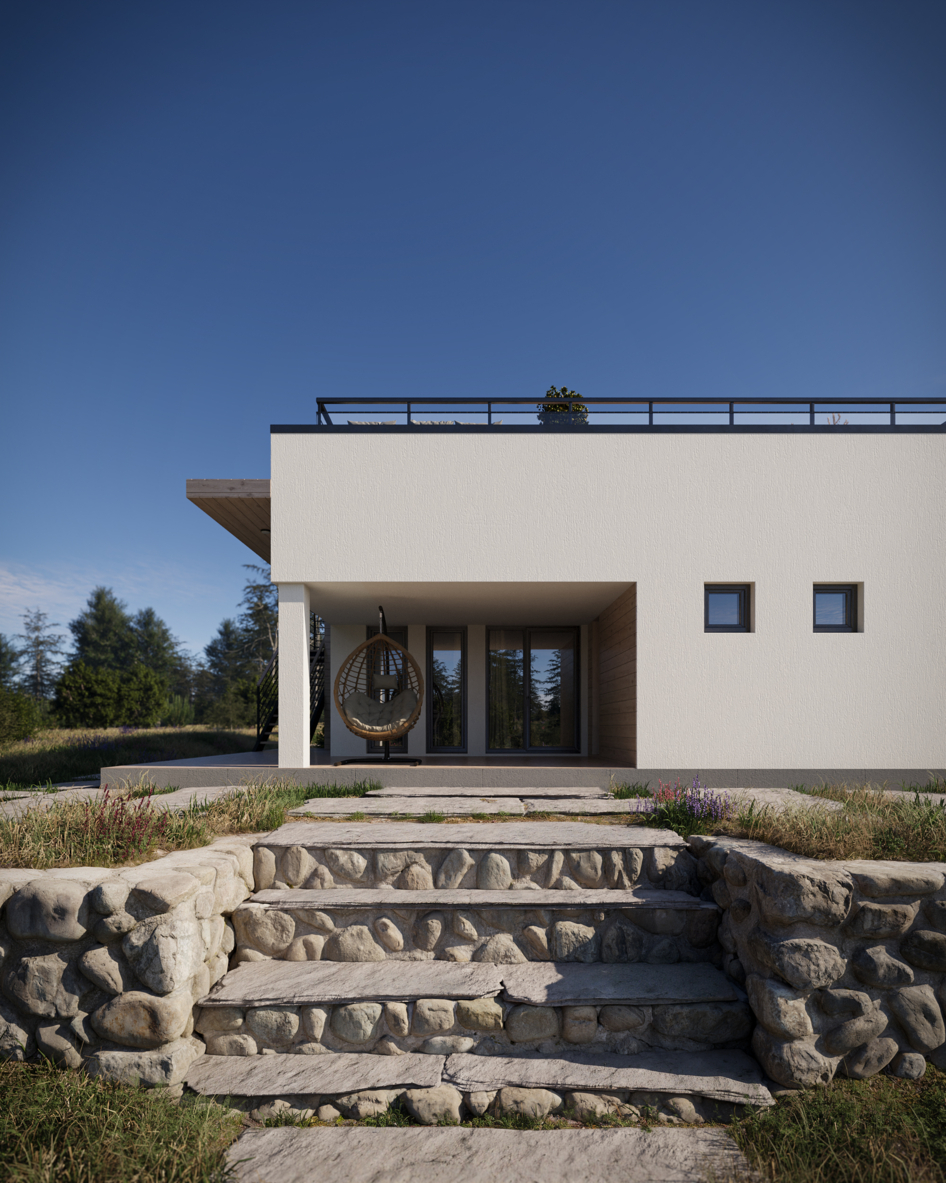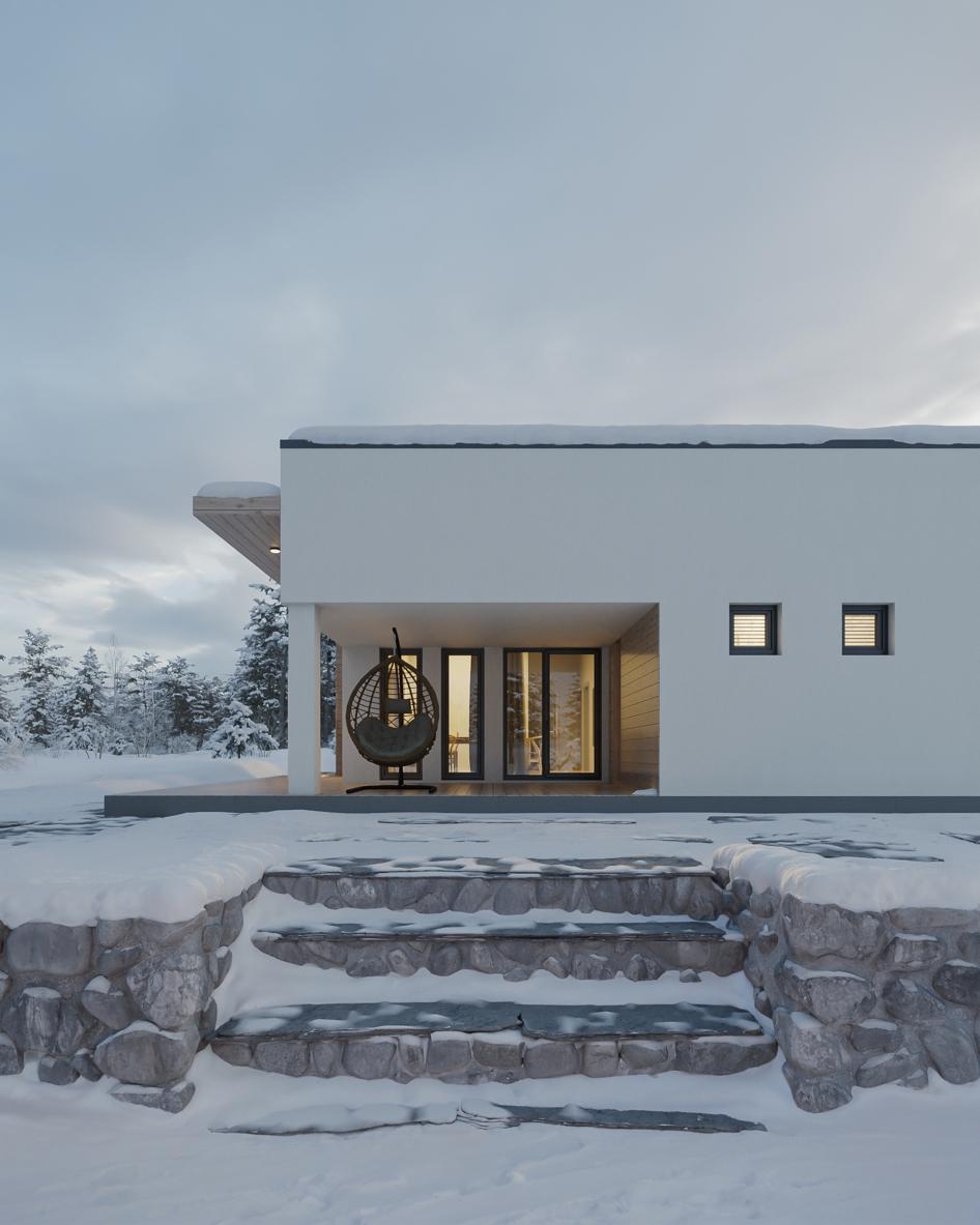 Этот проект — история о том, как небольшой дом проживает год в месте, где главным соседом является природа. Визуализации подобраны так, чтобы раскрыть красоту архитектуры и выгодное расположение с каждой стороны.