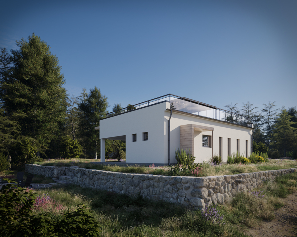 This project tells the story of a small house living through the seasons in a place where its main neighbor is nature. The visualizations are carefully composed to reveal the beauty of the architecture and its advantageous positioning from every angle.
