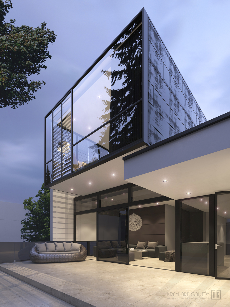 мне работа нравится, ракурс нравится, эффектно так , свет снаружи нравится, но я бы добавила теплоты света изнутри здания. и отражение смущает. оно взаправдишное или шоп? просто типа дерево с листьями стоит а отражается ёлочкка.