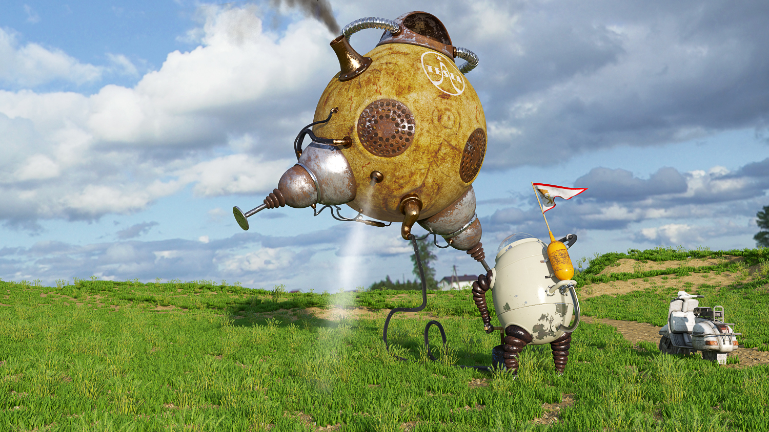 Создавал по скетчу Якуба Дворски (Amanita Design). Нашел рисунок на его персональном сайте. У него все там такие, помесь стимпанка с сюрреализмом, очень круто, я вам скажу)...Вот только исполнение у меня хромает, я знаю..Я максом недавно занялся, еще не до конца знаю все фичи...уж извините.