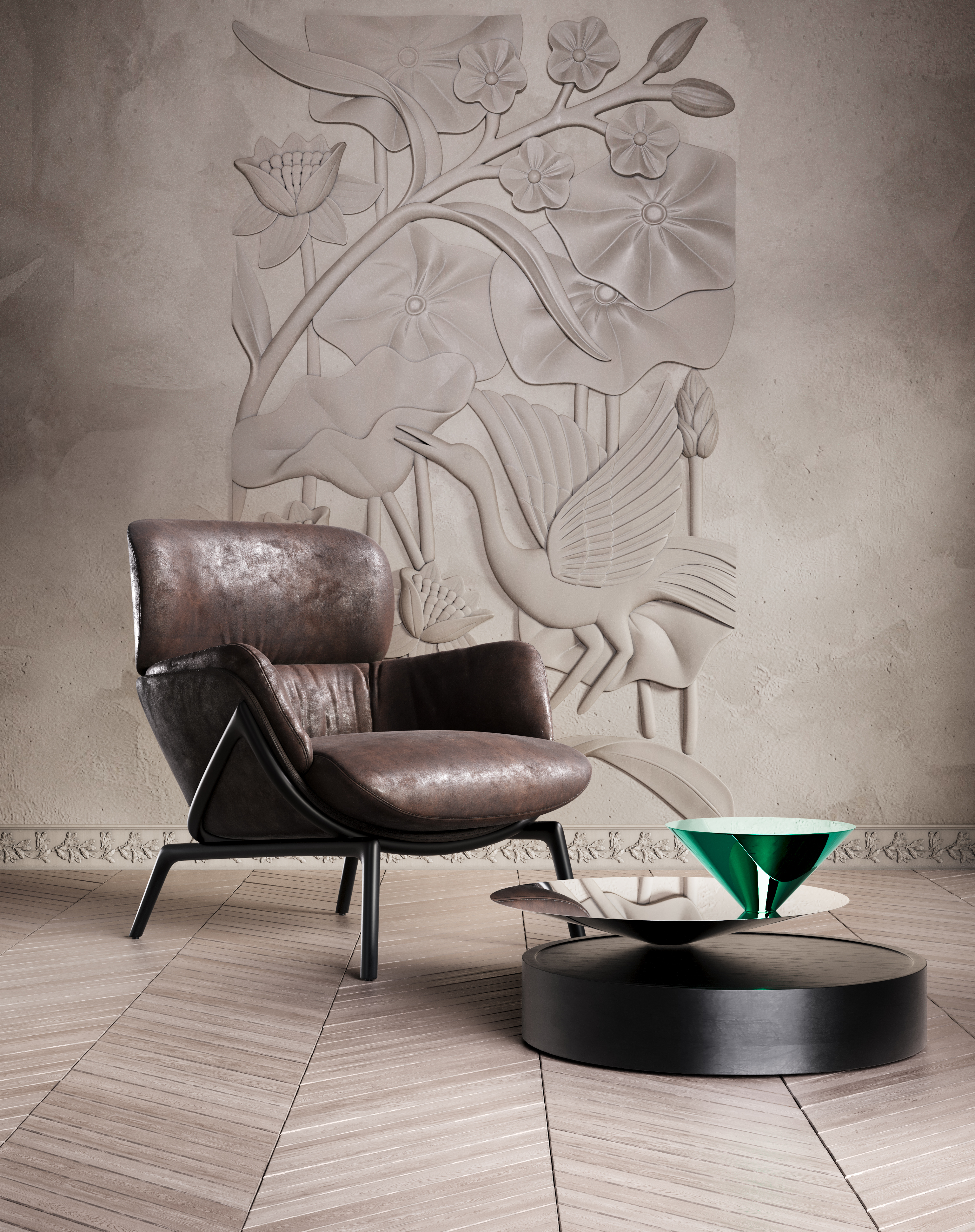 Журавль не улетает, он покой охраняет.... В работе использованы free модели производителей: барельеф