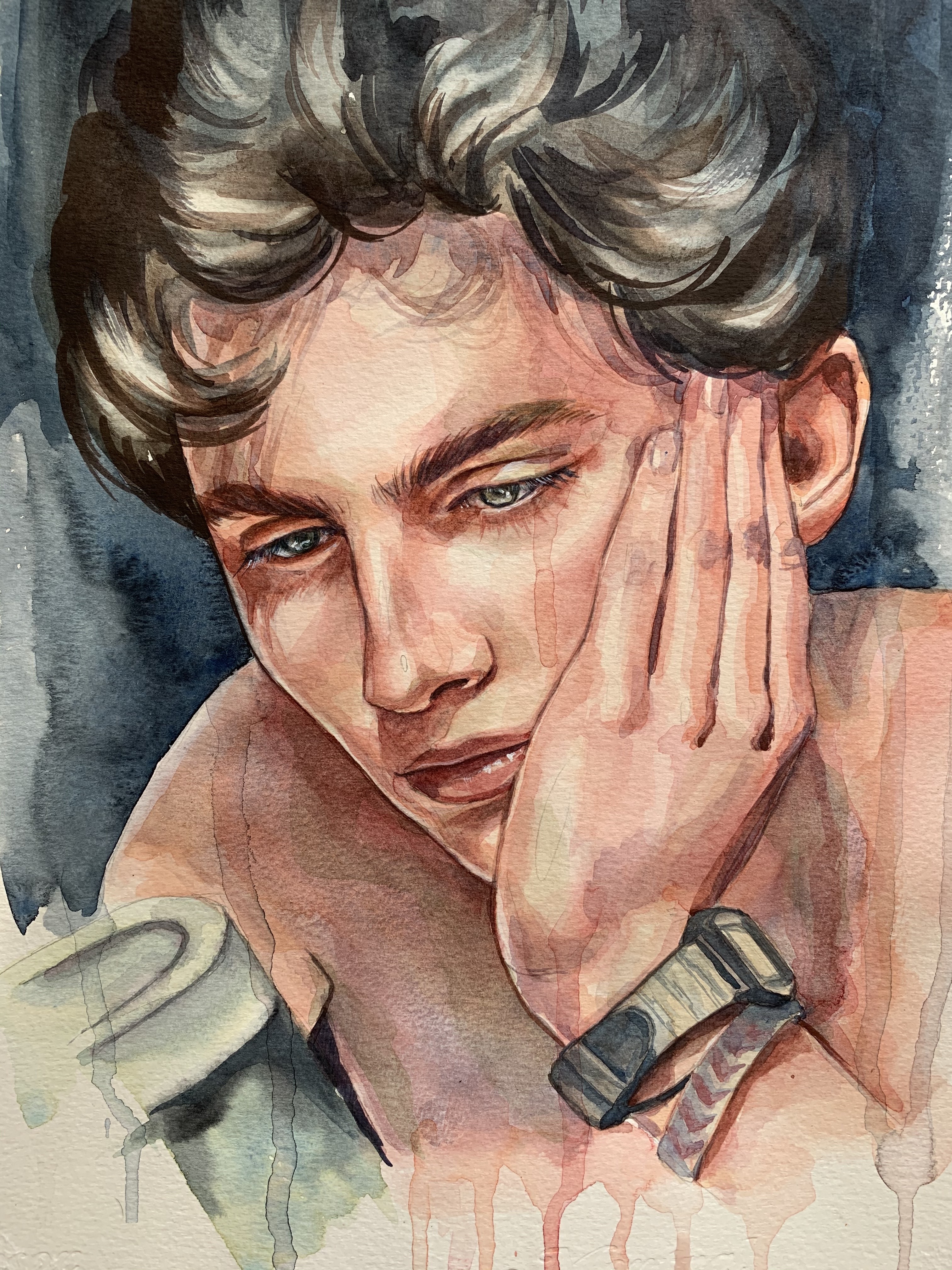 Портрет Тимоти Шаламе для арт марафона в инстаграме по фильмам с его участием акварель, формат а3
