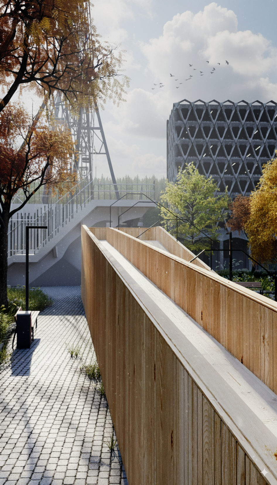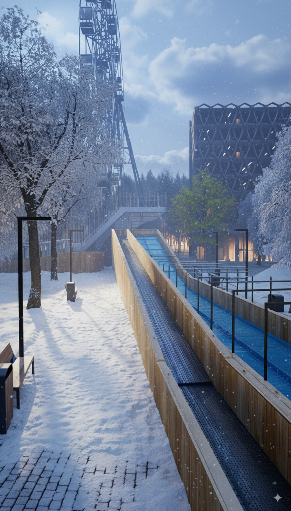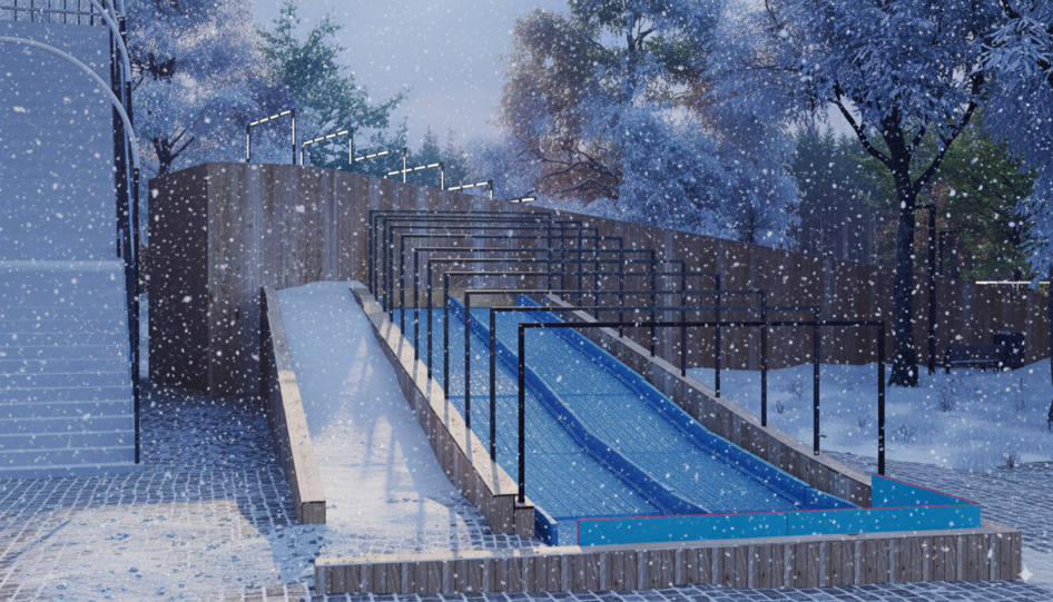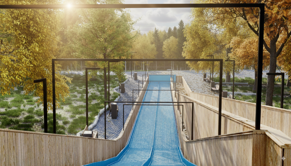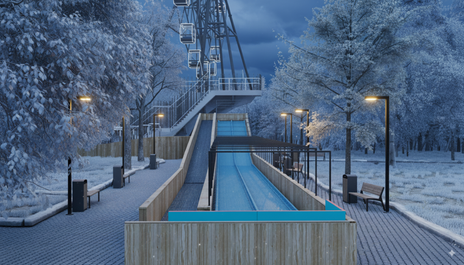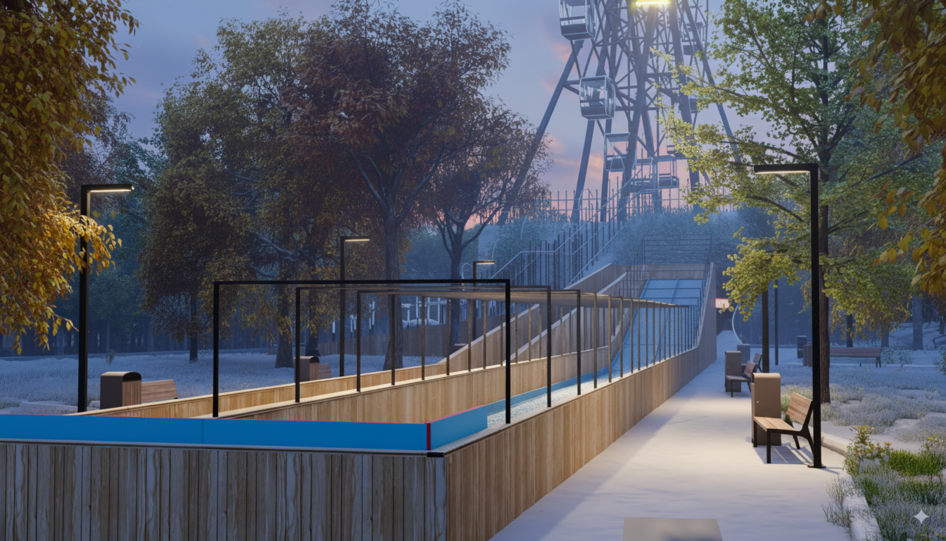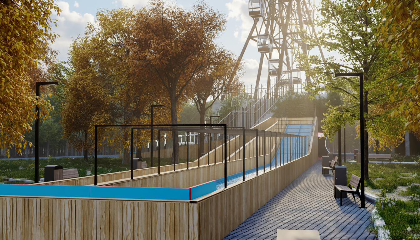 В общем смотрите, оценивайте. Визуализация оформлена по живым фотографиям заказчика парка. В Липецке, где я живу, такое уже строилось)
