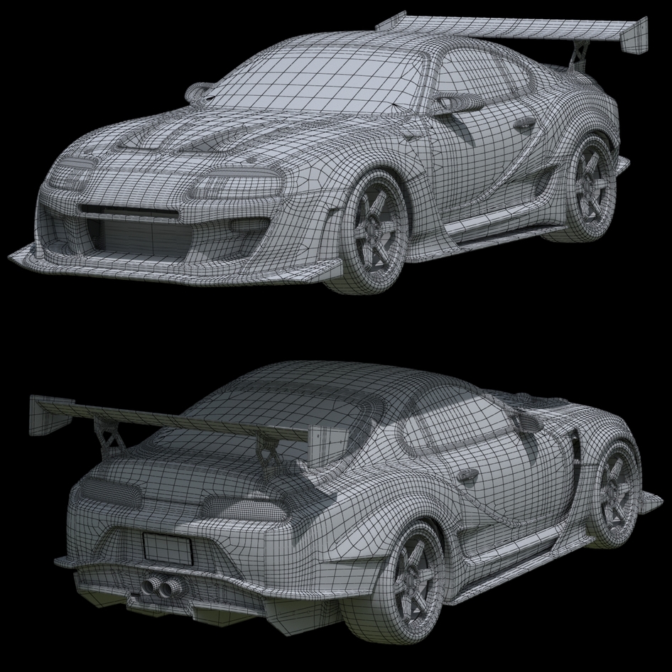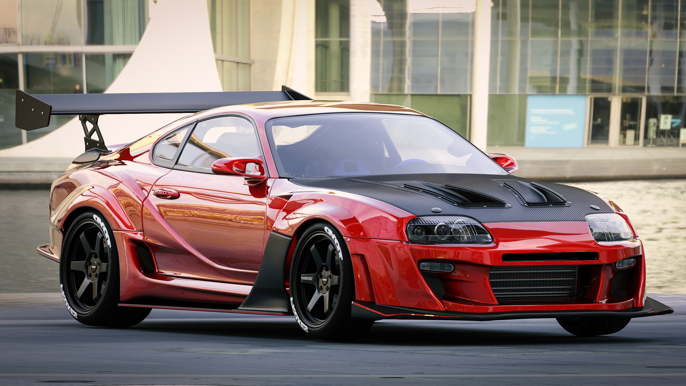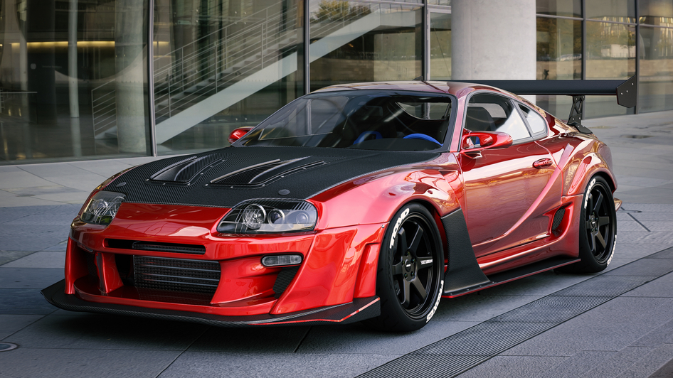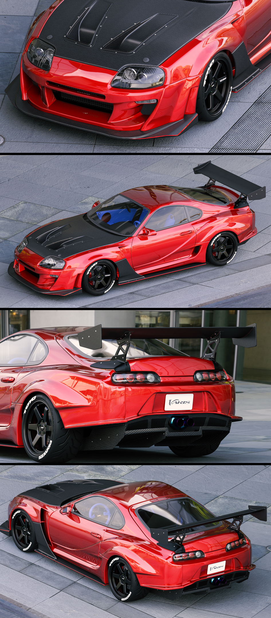 Высокодетализированная 3D-модель легендарной Toyota Supra MK4 в кастомном widebody-обвесе. Модель полностью смоделирована вручную в 3ds Max, рендер выполнен в V-Ray. Для постобработки использовался Photoshop.