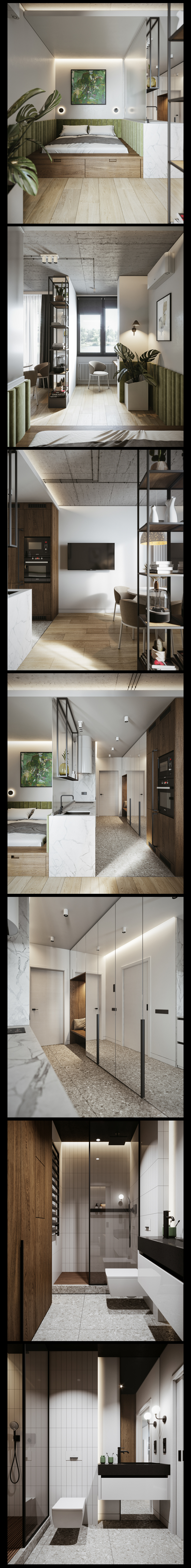 Дизайн и визуализация маленькой квартиры для молодой пары. Дизайн: Коротченко Андрей Визуализация: Коротченко Андрей Общая площадь 32м2. Год 2019. Киев. Soft: 3dsMax, Corona, Photoshop