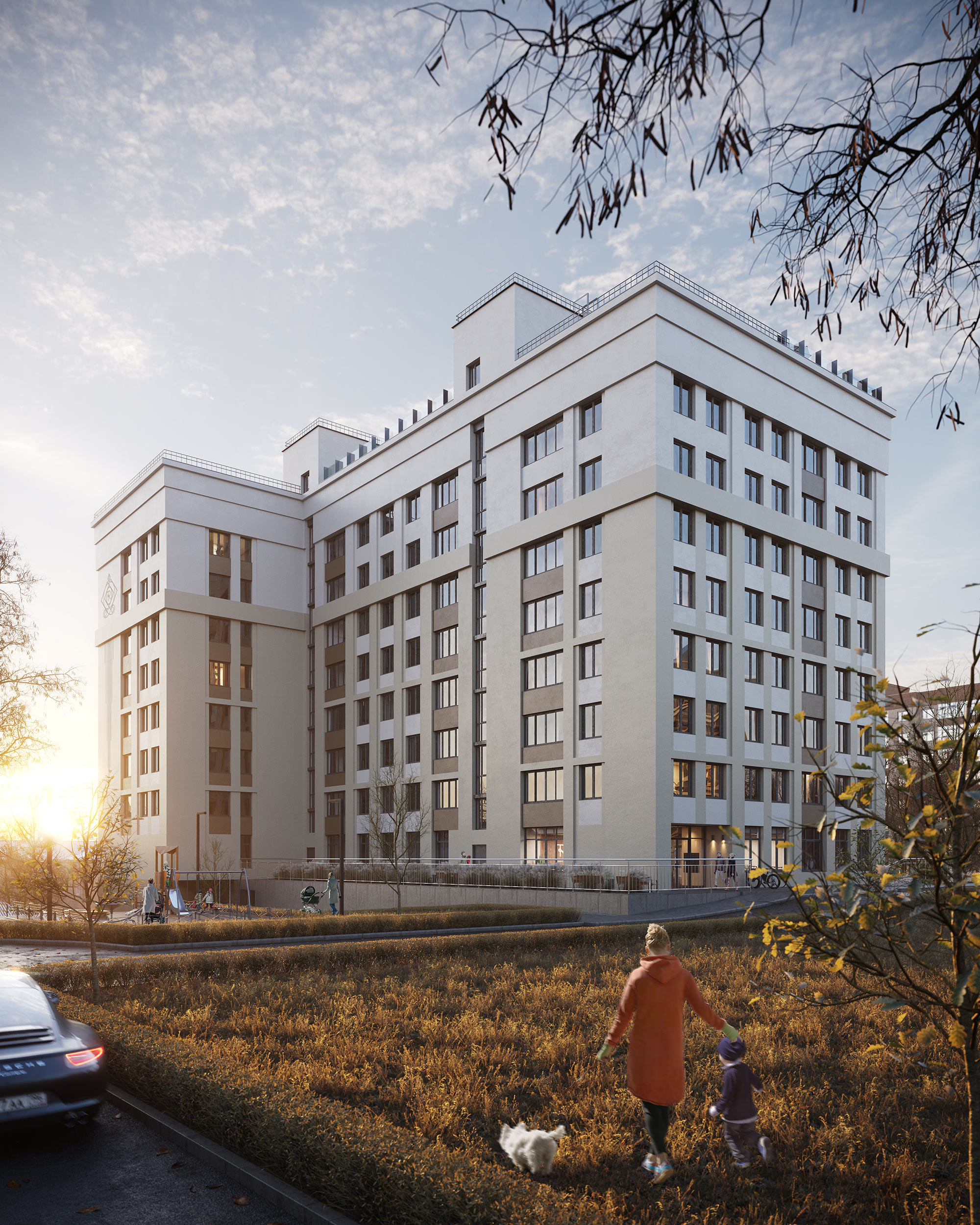 -Рекламную 3д визуализацию жилого комплекса с высоты птичьего полета на кровлю