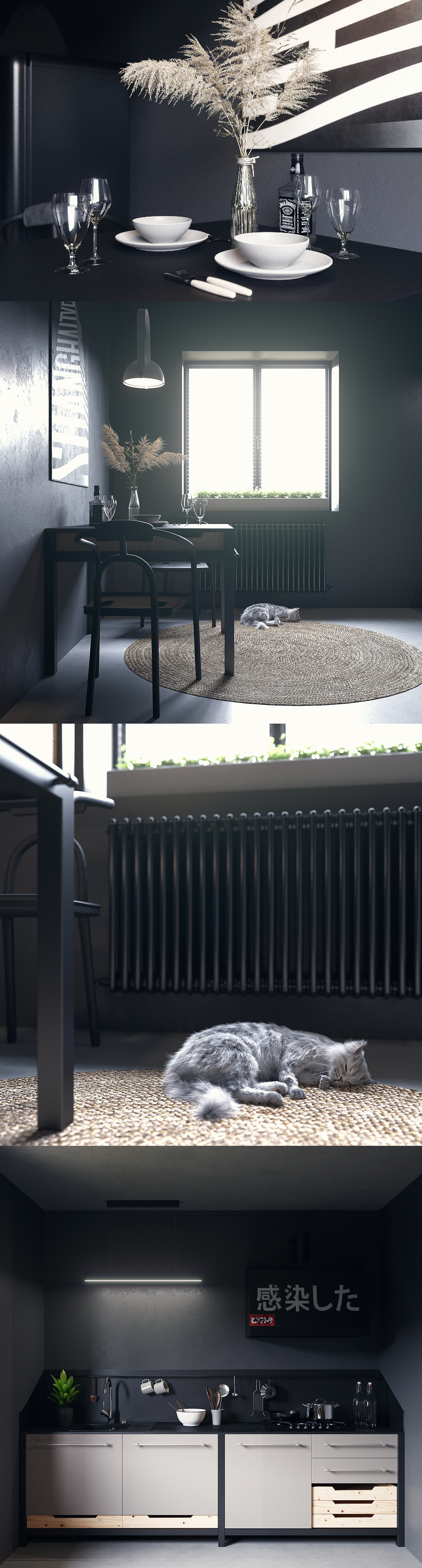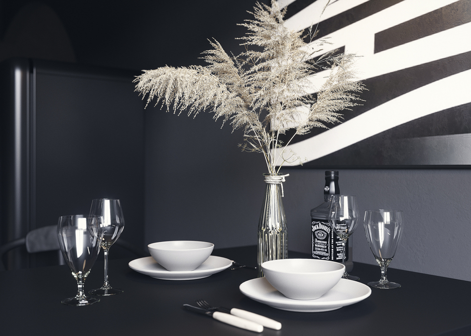 Продолжение моего предыдущего поста. Зона кухни-столовой. Работа получилась для конкурса одного магазина радиаторов. Кухню сделал на подобии проектов от aero-slon. Немного измененный.