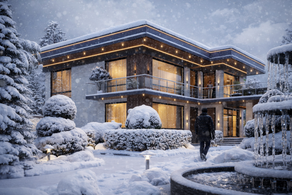 на 4 кадре мужика аж снегом присыпало, он как будто вышел в теплую погоду, а тут поднялся резкий аномальный арктически ветер и он вмерз на месте, короче, если начать фантазировать, то не рендеры, а сценарий постапокалиптического фильма получается)