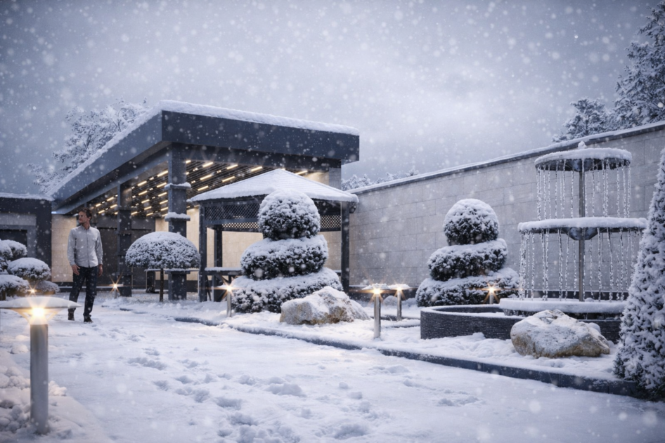 Полагаю фонтан они каждый год заново выкладывают? Если не сливать воду и она в нем замерзнет, полопаются все трубы и насос и вся плитка.
