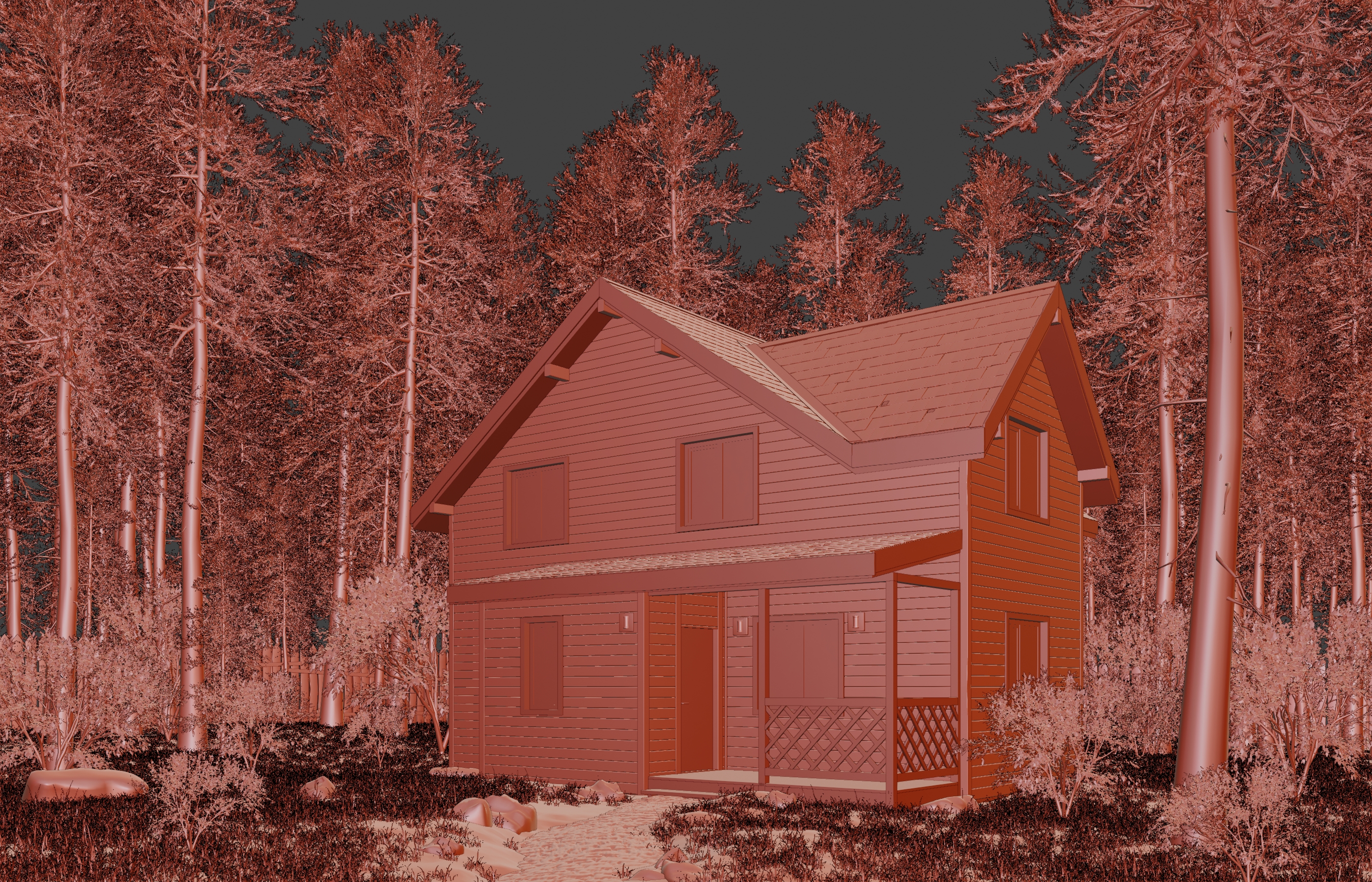 Черепица моделенная неплохо смотрится, дорожка на переднем плане живо! Со скаттарингом есть косяк- некоторые деревья друг на друга налазят