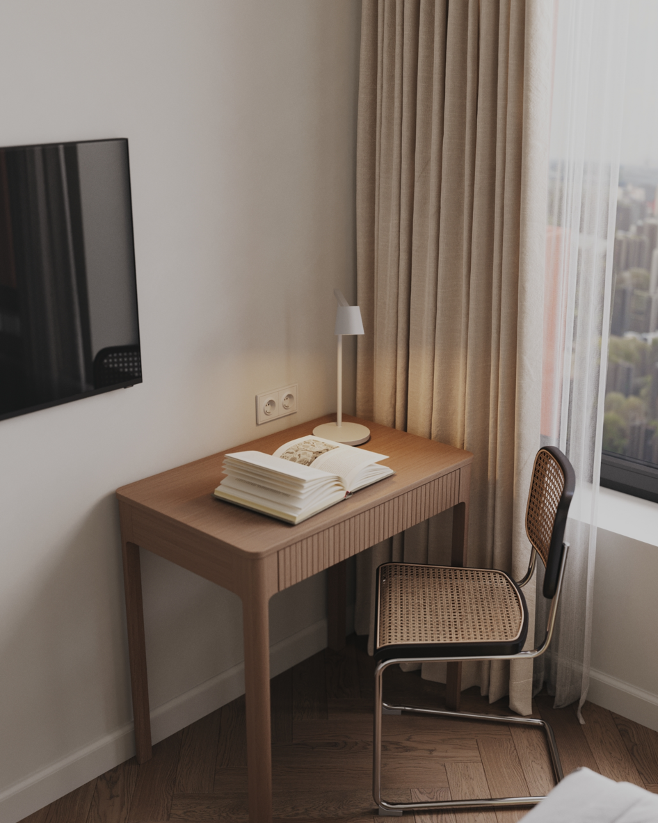 Моя задача заключалась в передаче атмосферы пространства, работы со светом, материалами и цветовой палитрой, а также в создании реалистичных визуальных образов будущего интерьера.