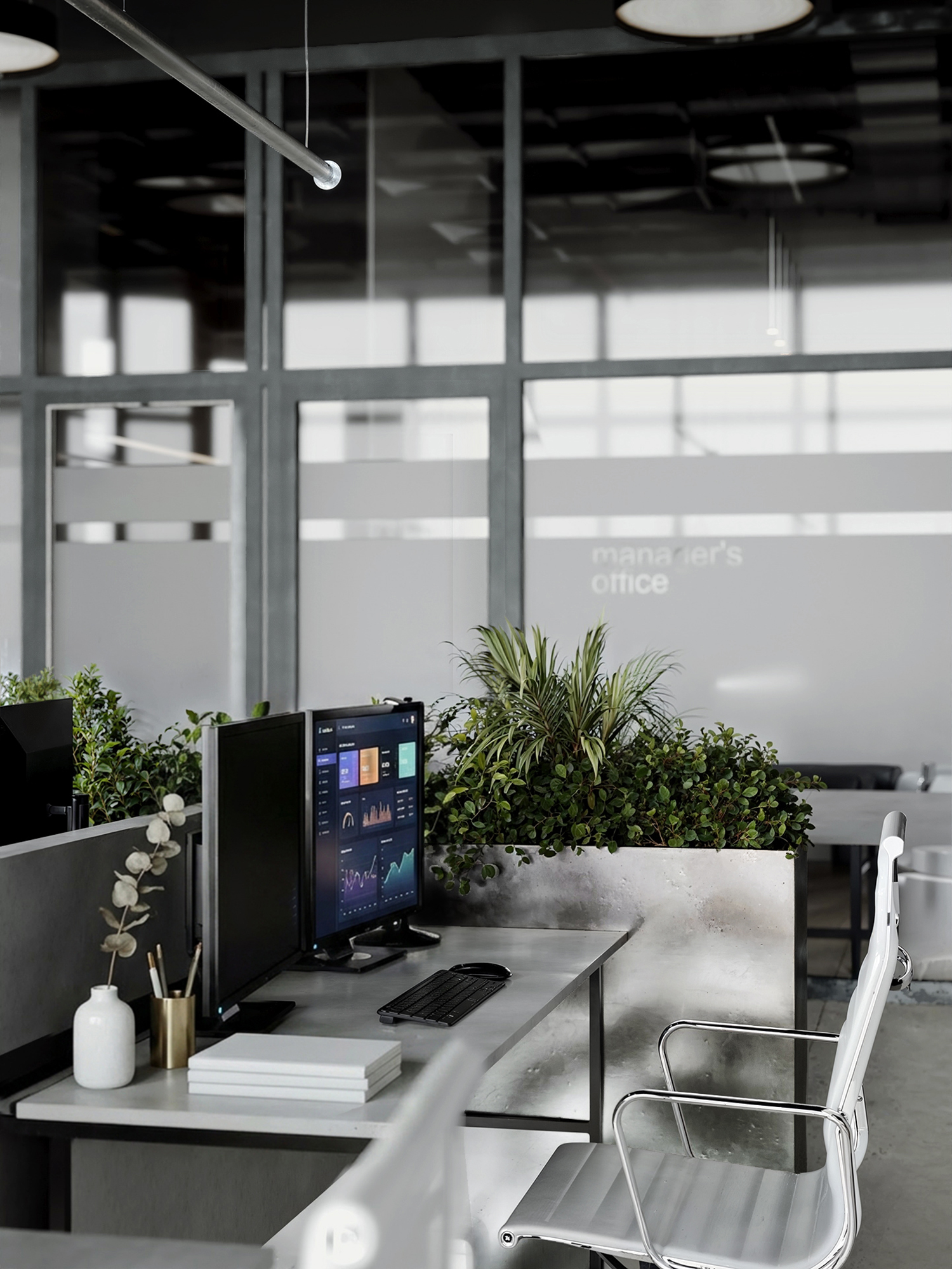 Вольная творческая переработка реально существующего офиса в г. Краснодар. За основу взята площадь помещения, и по референсам выполнено полное изменение всех объектов для получения офиса мечты, в котором сам бы хотел работать.