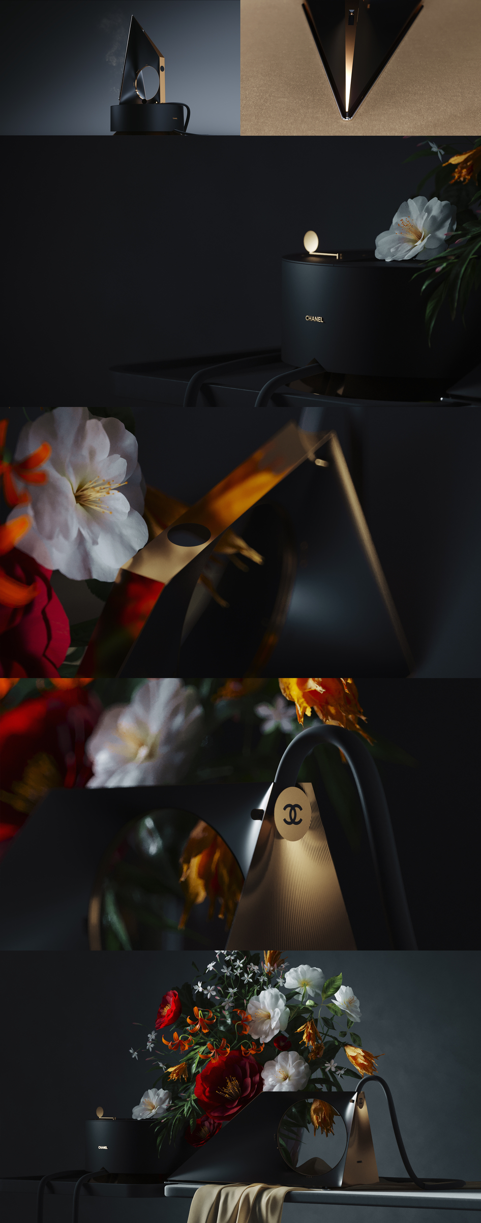 2) И финальный кадр - захотелось эффектности добавить - пар между утюгом и цветами, чтобы глубина кадра появилась. А то воспринимается как слепленный кадр - не хватает глубины, или воздушность цветам добавить в материалах