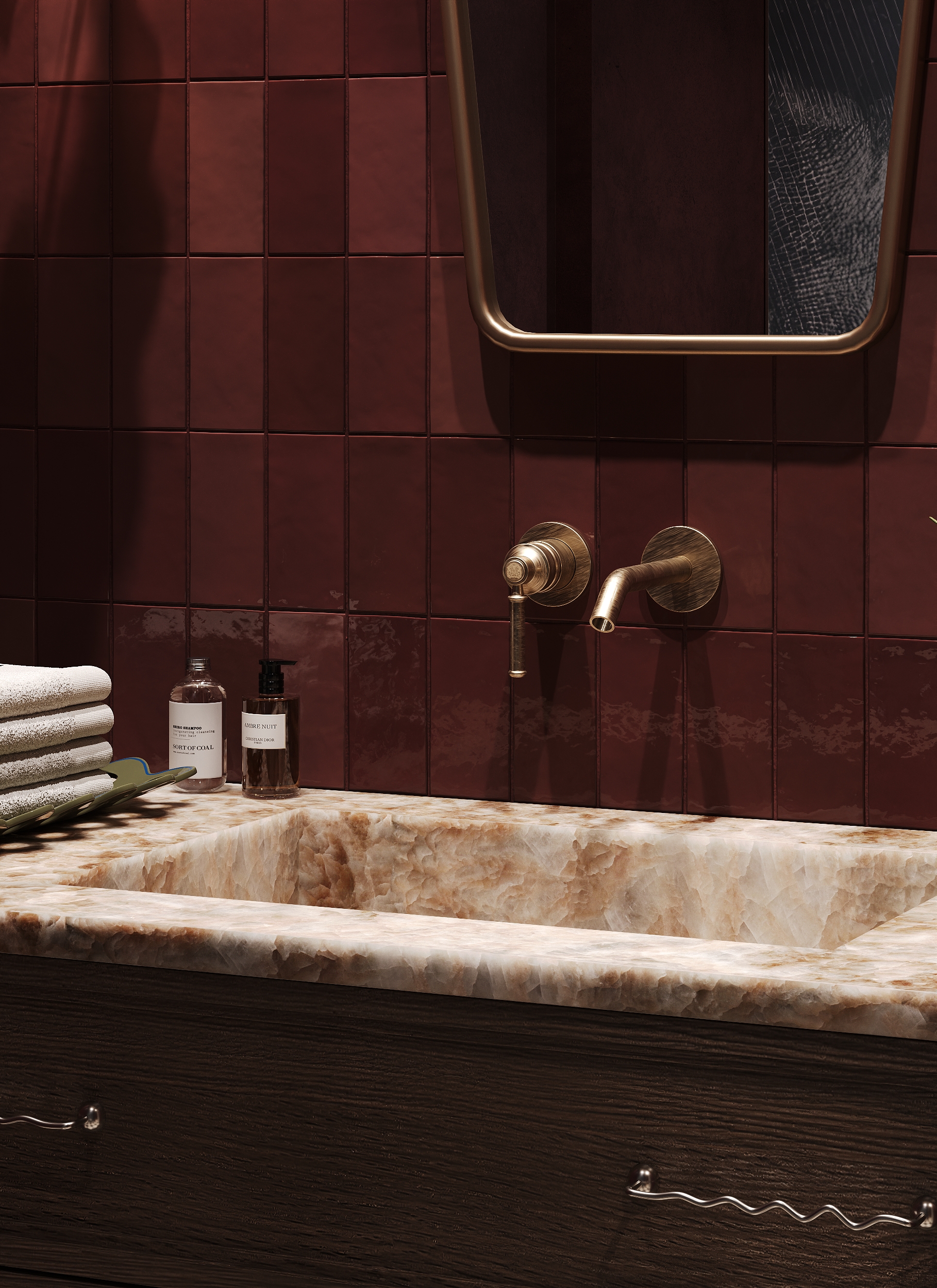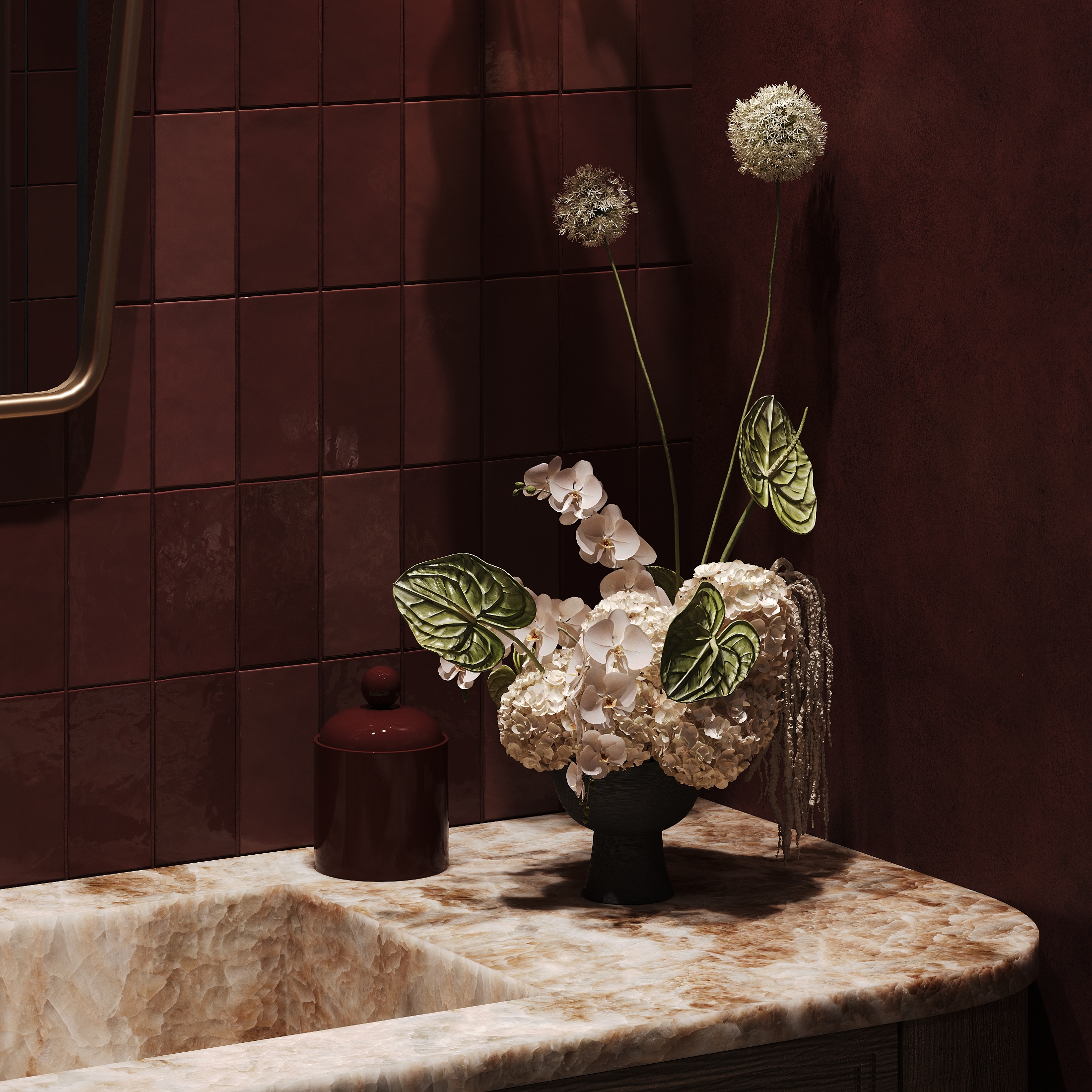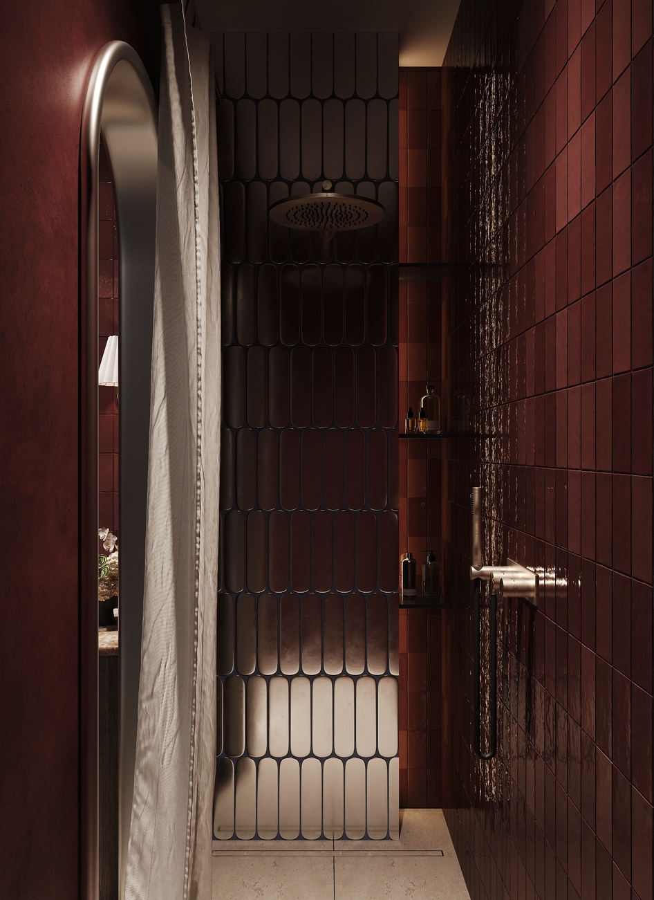 Красивая работа, но всё-таки по моему если добавить арку где обои где унитаз, такую же как с боку, смотрелось бы лучше ( это только моё мнение на уже готовый виз )
